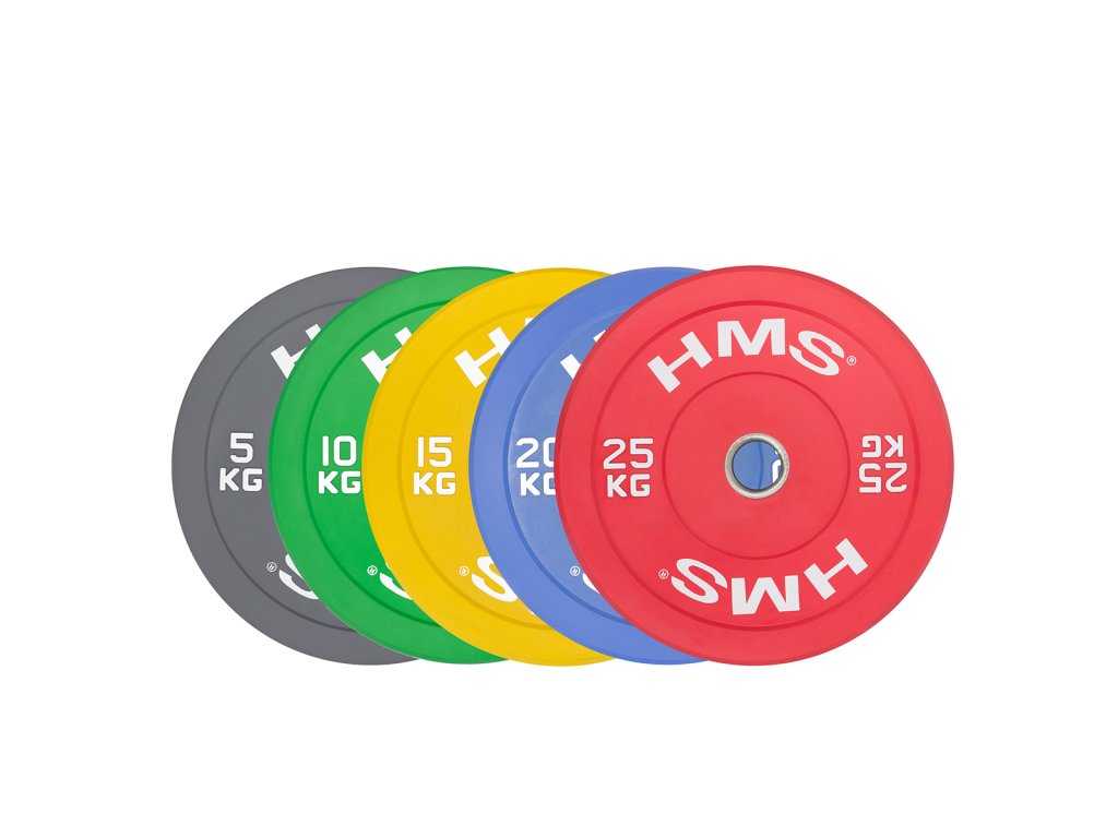 Barevný bumper kotouč HMS vhodný pro vzpěračský a funkční trénink. Jeho hlavním parametrem je odolnost, kdy i po odhodu z velké výšky, zůstane kotouč i podloží bez známky poškození. Kotouč je určen pro olympijské osy s průměrem trnů 50 mm a je zbarvený dle závodních parametrů.