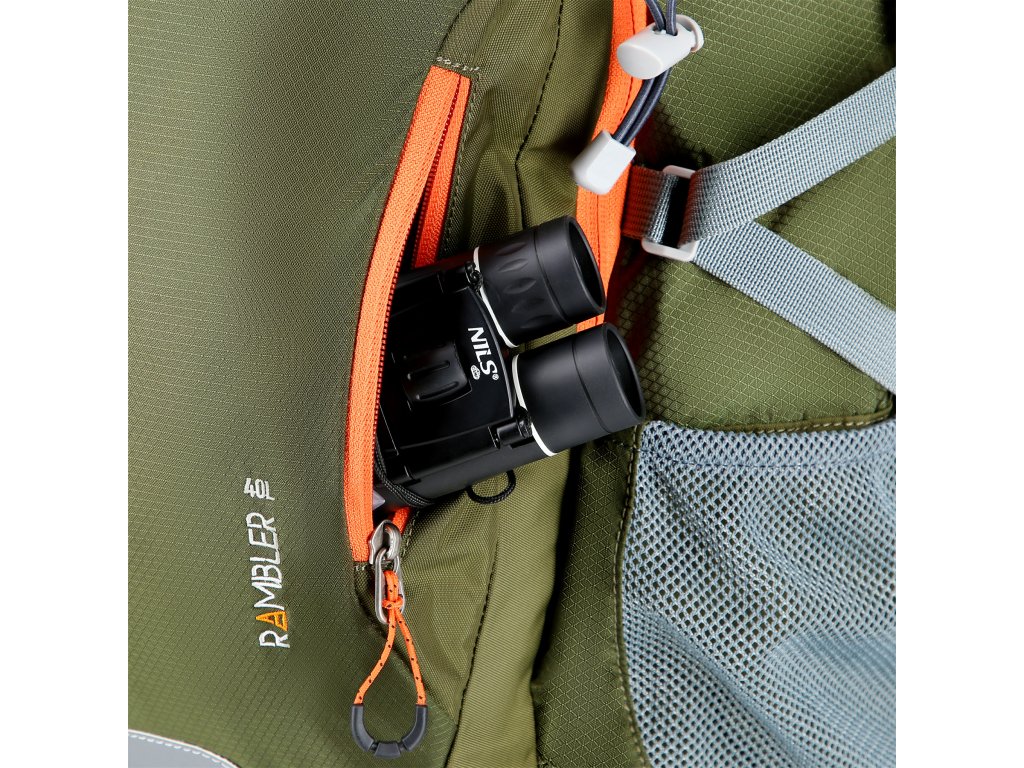 Model Rambler má polstrované ramenní popruhy, které je možné sepnout výškově nastavitelným hrudním řemínkem s plastovou přezkou a bederní popruh, který pomáhá rovnoměrně rozložit hmotnost batohu i při intenzivních aktivitách. Mezi ramenními popruhy se nachází poutko pro přenášení batohu v ruce. Kromě toho má batoh Rambler samostatnou kapsu na hydrovak (není součástí balení), četné kapsy a přihrádky, které umožňují intuitivní uspořádání obsahu. To nejen zvyšuje organizovanost, ale také poskytuje snadný přístup ke všem potřebným věcem, aniž byste museli prohledávat celý batoh.