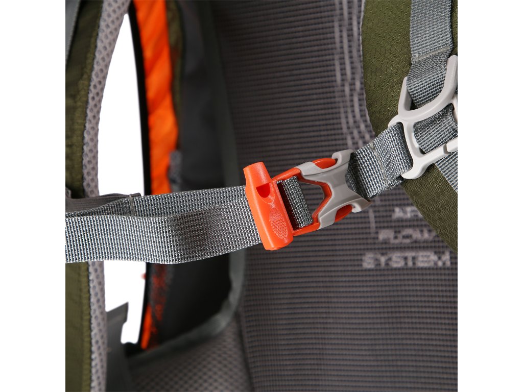 Přezka hrudního řemínku funguje jako nouzová píšťalka, která je nezbytnou součástí výbavy pro případ, že byste v nouzi potřebovali přivolat pomoc. Batoh Rambler je také vybaven reflexním prvkem na přední straně, který zvyšuje viditelnost uživatele při osvícení.