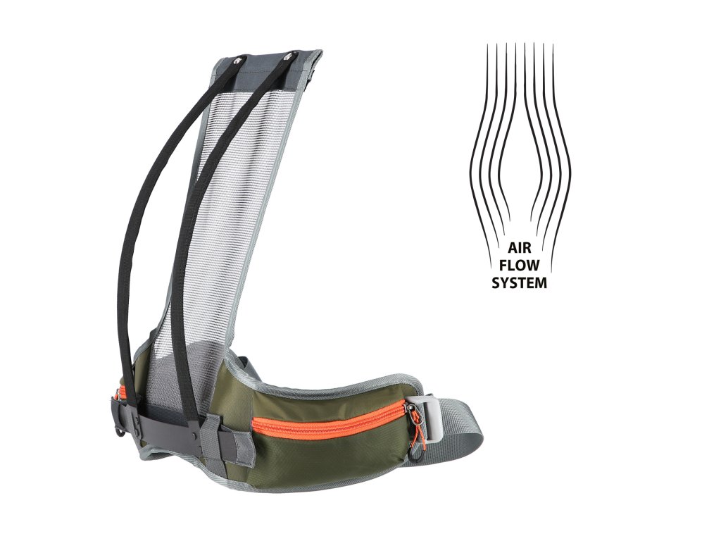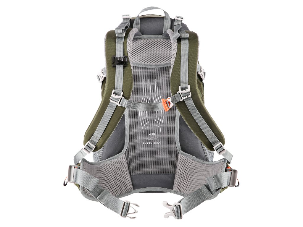 Jedinečný ventilační systém odděluje hlavní komoru od zádové části a zajišťuje cirkulaci vzduchu a pohodlí i v tom nejteplejším počasí. Celá váha batohu navíc spočívá na profilovaném rámu, který snižuje tlak na páteř a zvyšuje pohodlí při dlouhých horských výletech. Panel je spojen s bederním popruhem a lze jej snadno vyjmout, čímž se stane z turistického batohu batoh městský.