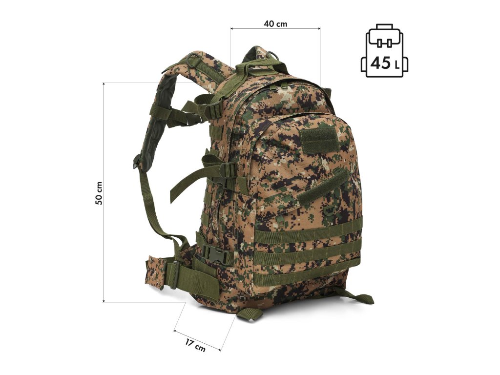 NC2904 Vanguard je vojenský batoh o objemu 45 litrů určený pro uživatele, kteří oceňují funkčnost, lehkost a taktický vzhled. Je ideální na jednodenní výlety, survival tripy a také jako městský batoh nebo EDC (Everyday Carry) - batoh na každodenní nošení nezbytných věcí, které chcete mít stále u sebe. Kompaktní rozměry v kombinaci s promyšleným designem z něj činí vynikající volbu pro každodenní použití i na výlety do terénu.