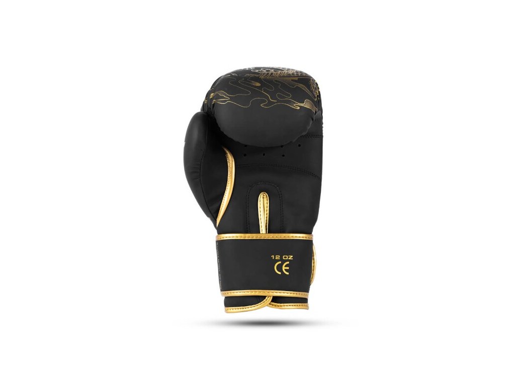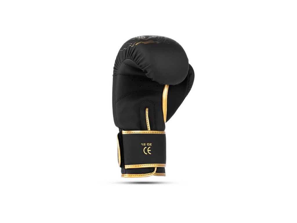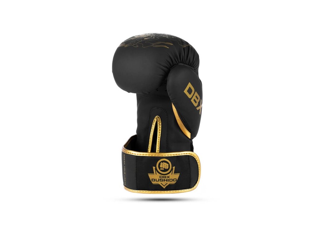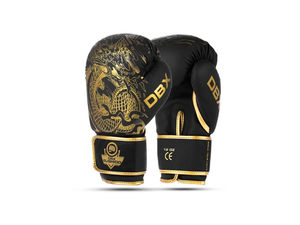 Boxerské rukavice DBX BUSHIDO "Gold Dragon" jsou vyrobeny ze zpevněné, syntetické kůže podšité tkaninou Blacktop, která odolává poškozením. Rukavice jsou ze strany dlaně opatřeny větracími otvory, které v kombinaci s vnitřním, vzduch propouštějícím materiálem, napomáhá snižovat teplotu uvnitř rukavice, díky tomu se ruka méně potí a trénink je komfortnější. Hřbetní část rukavice je vyplněná speciální obměnou paměťové pěny, která dokonale pohlcuje údery i během delšího a intenzivnějšího tréninku jak na boxovacím pytli, tak na terči či při tréninku se sparing partnerem. Bezpečnost rukavic zajištuje široký pásek se suchým zipem pro zpevnění zápěstí a prostor pro palec spojený řemínkem se zbytkem rukavice, tyto prvky minimalizují možnost zranění.