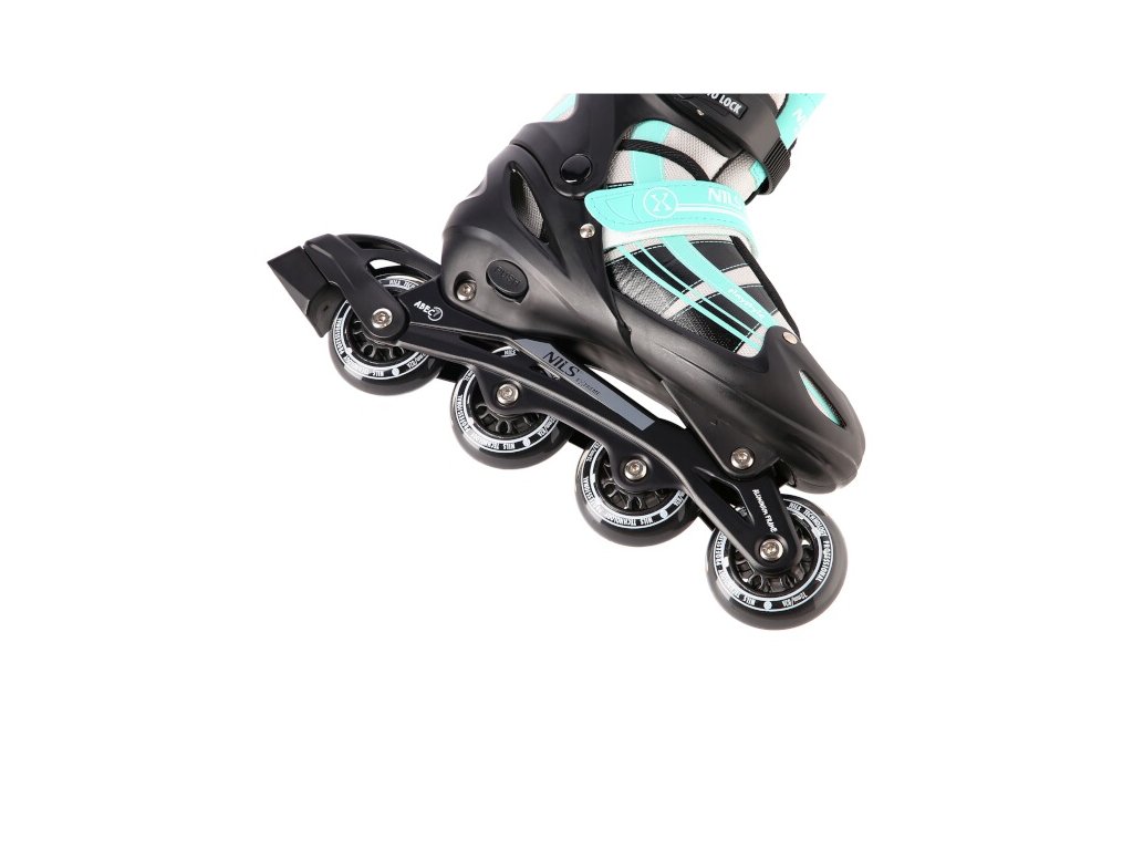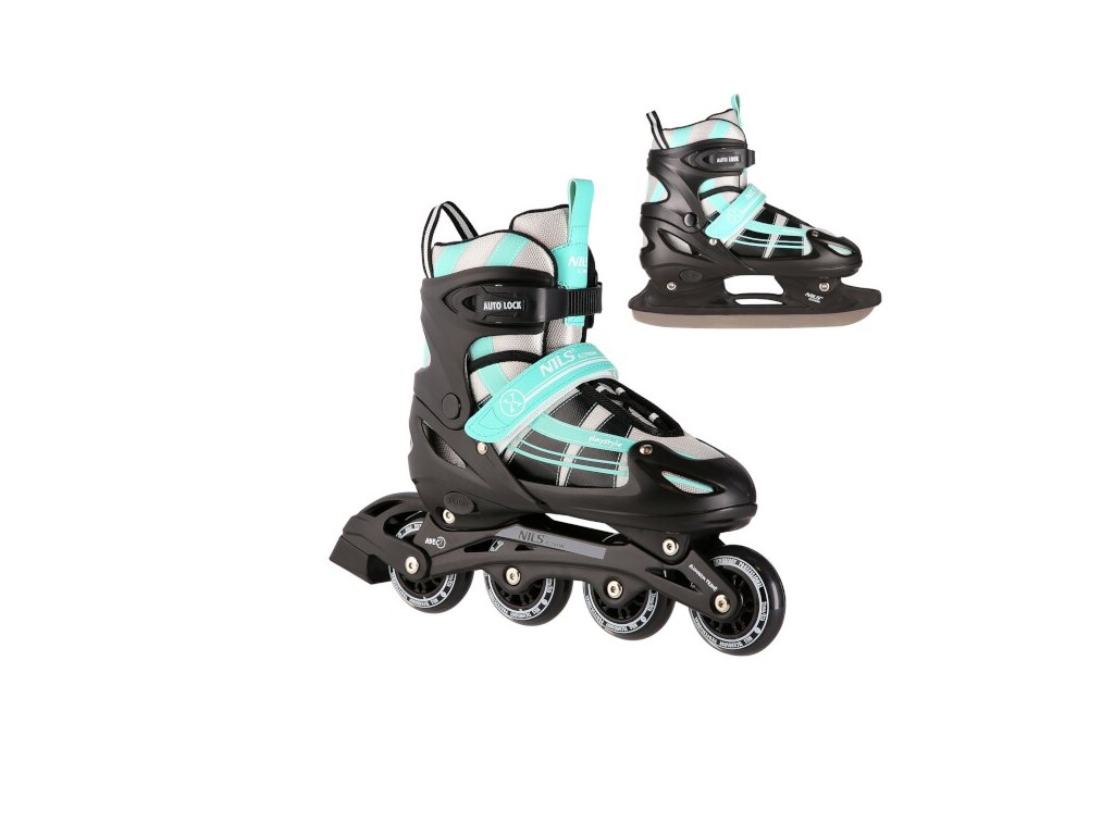 Kolečkové brusle NILS Extreme NH18366A jsou určeny k rekreačním projížďkám pro začínající a středně pokročilé bruslaře. Model NH18366A v sobě spojuje poutavý design a kvalitní materiály. Model má vyměnitelný podvozek a brusle tak využijete jak na asfaltu, tak na ledu.