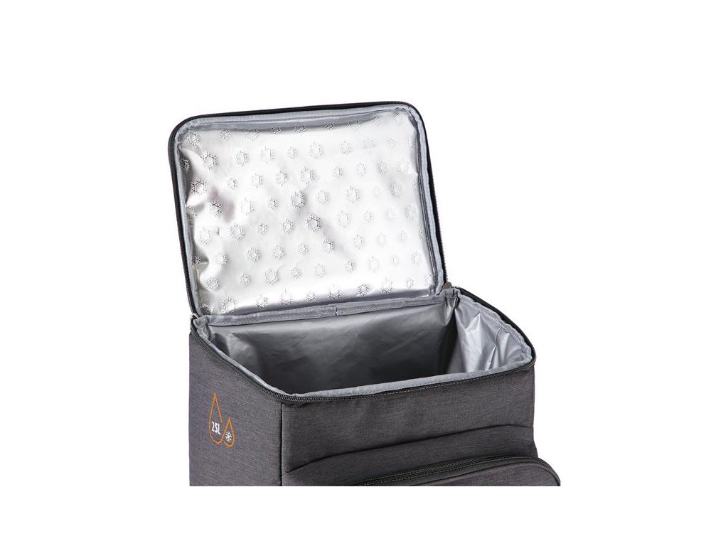 Vyrobeno z odolné tkaniny 300D Oxford a podšité izolačním PEVA, hlavní oddíl poskytuje vynikající tepelnou ochranu. Taška také nabízí další prostor díky dvěma bočním síťovaným kapsám a dvěma předním kapsám na zip, ideální pro uložení věcí, které nevyžadují tepelnou izolaci. Díky objemu 25 litrů a nízké hmotnosti je nejen velmi prostorná, ale také se snadno přepravuje, což z ní dělá vašeho spolehlivého partnera při jakémkoli outdoorovém dobrodružství. NC3140 má navíc nastavitelné ramenní popruhy, které umožňují nošení na zádech jako batoh. Toto řešení je ideální pro lidi, kteří chtějí mít volné ruce na cestách, ať už při pěší turistice nebo na kole.