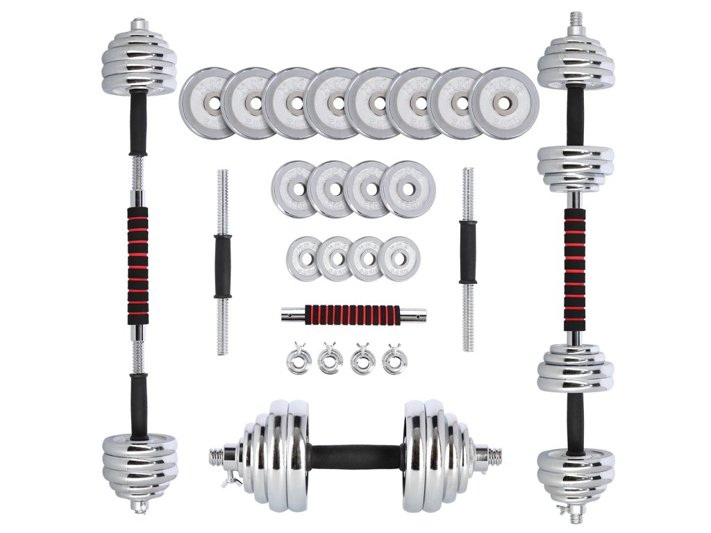 Činky jsou vyrobeny z vysoce kvalitní, chromované oceli, která je zárukou dlouhé životnosti. Kotouče se proti posunutí zajišťují šroubovacími zámky, které jsou dodatečně jištěny šroubem s křídlovou matkou.