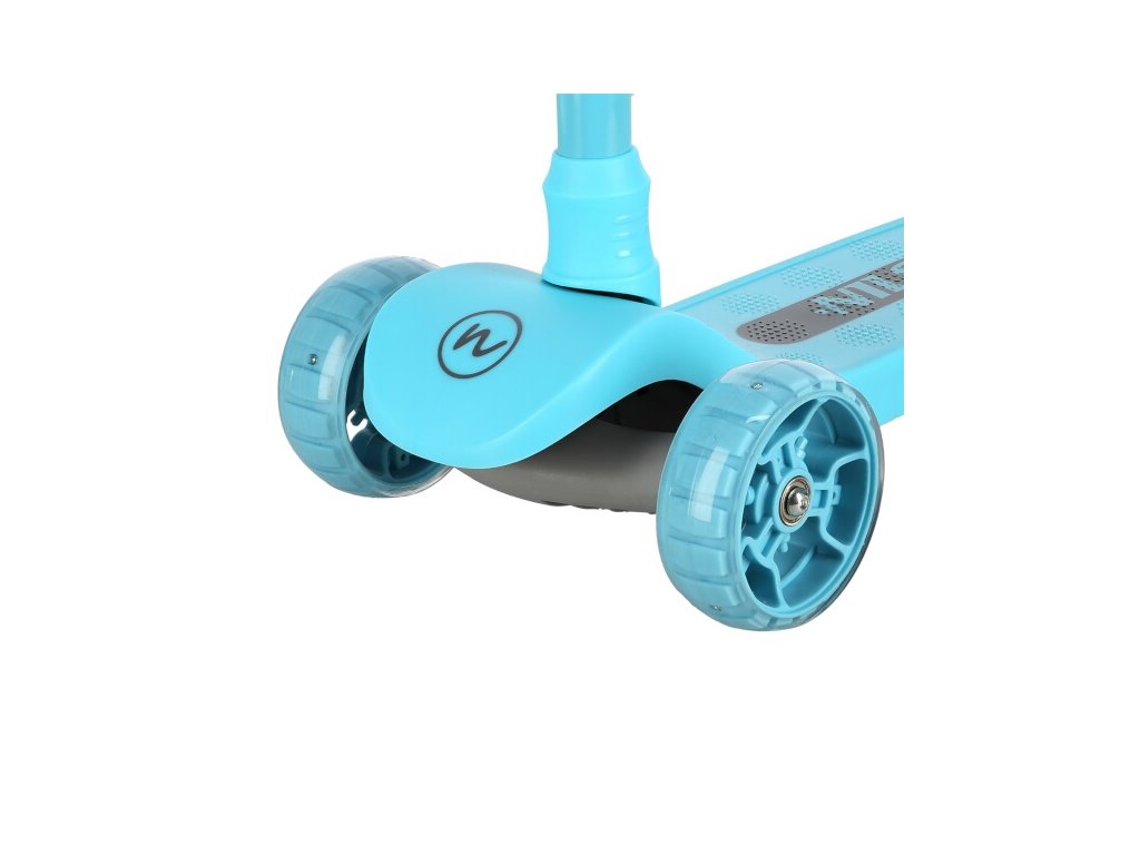 Přední kolečka o průměru 120 milimetrů jsou osazena bílími LED diodami, zadní kolečko o průměru 90 milimetrů diodami barevnými. Svítící LED diody slouží jako zajímavý, vizuální prvek, zvyšují zájem dětí a v neposlední řadě zvyšují viditelnost koloběžky například za šera. Kolečka svítí automaticky během jejich otáčení. Dále jsou kolečka osazeny ložisky ABEC 7 pro plynulou jízdu. Zadní blatník slouží jako nášlapná brzda pro bezpečné zastavení koloběžky.