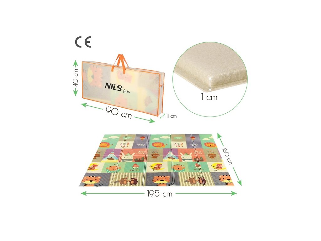 Objevte svět zábavy s naší dětskou skládací podložkou ZOO od NILS Fun! Tato jedinečně navržená podložka s barevným motivem ZOO vaše dítě nejen potěší, ale stane se i jeho oblíbeným místem ke hře. Nabízí plochu 195x180 cm a poskytuje ideální místo pro rozvoj motorických a vzdělávacích dovedností.