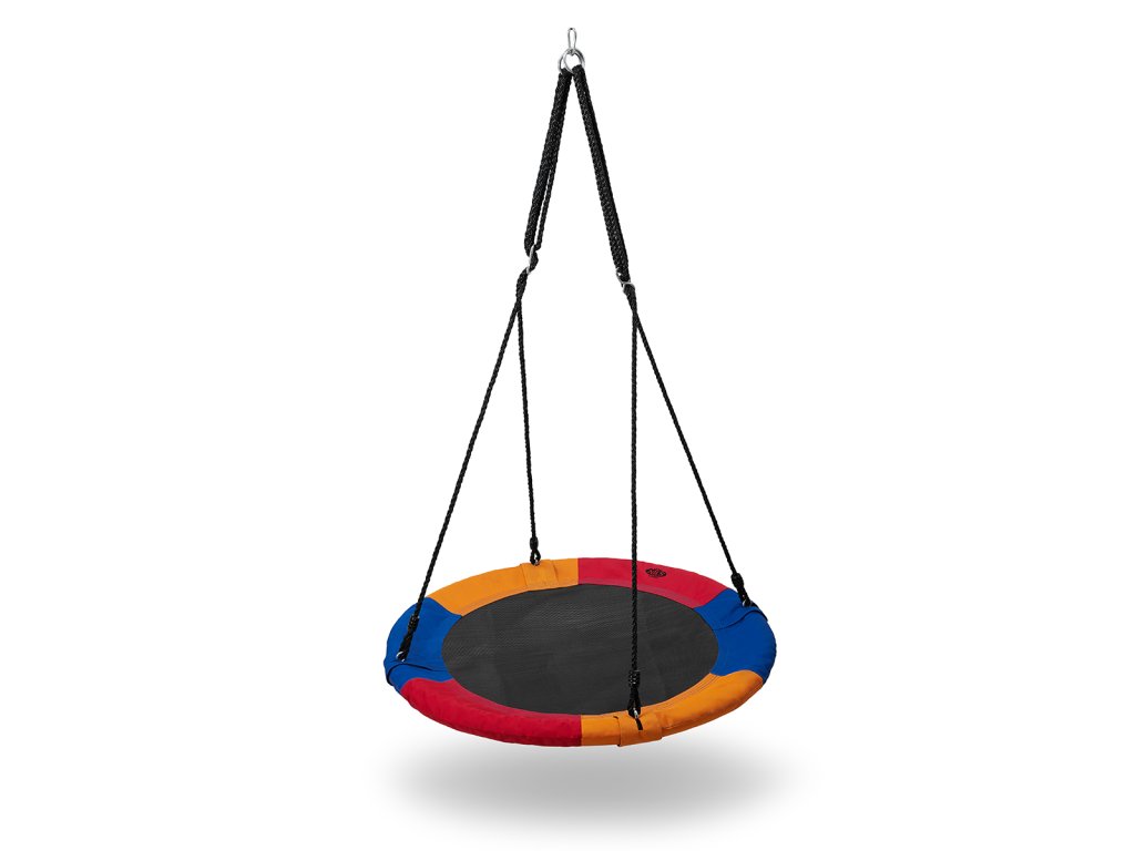 Kruhová houpačka NILS Camp NB5003 je vhodná pro použití venku. Hnízdo je vhodné jak pro houpání, tak pro odpočinek a díky průměru 90 cm a nosnosti až 150 kg se do něj pohodlně vejdou dvě děti. Houpačku drží 4 PE lana o délce 180 cm. Samotná konstrukce hnízda je tvořena 25 mm širokým, ocelovým kruhem, který je chráněn vrstvou mirelonu a přes něj je natažena polyesterová tkanina Oxford 600D.