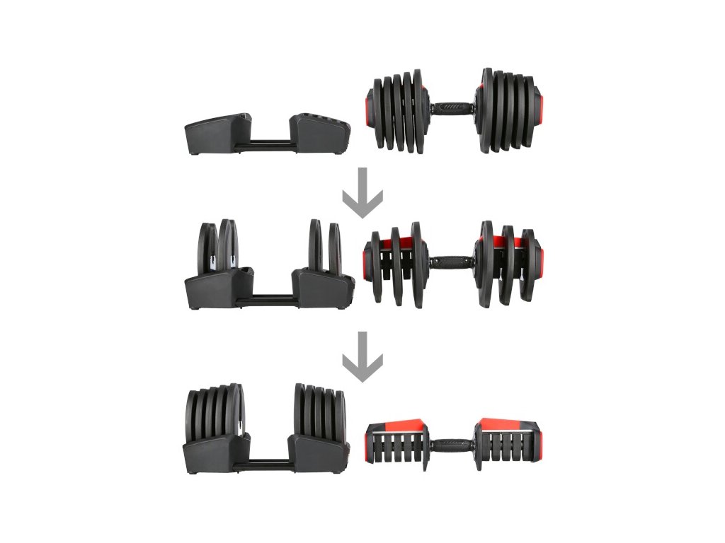 Činka SGR40 se velmi snadno používá. Po vybalení stačí sadu umístit do speciálního stojanu a otočením rukojeti nastavit příslušnou zátěž, která je označená v kilogramech a librách. Systém zámků spojí s činkou takovou kombinaci závaží, která odpovídají vybrané zátěži a zbytek závaží zůstává ve stojanu. Pokud potřebujete zátěž upravit, pak činku uložíte do stojanu, otočíte rukojetí a můžete pokračovat v tréninku.