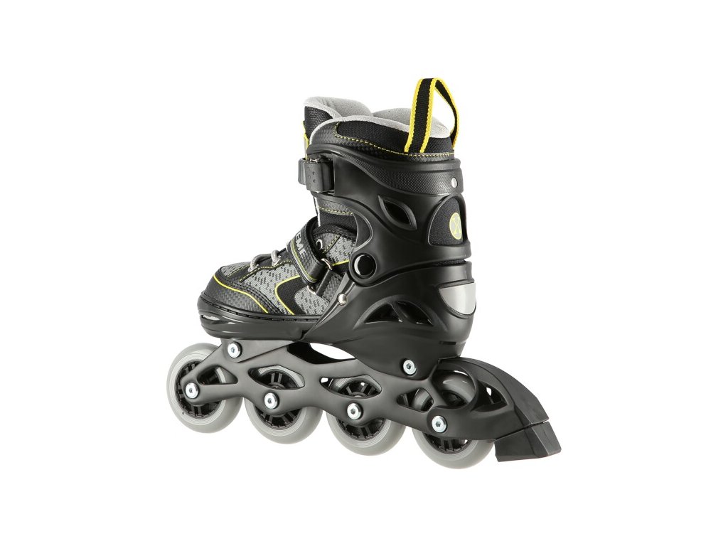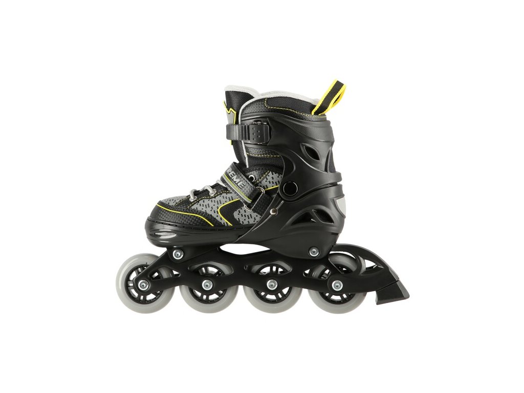 Hliníkový podvozek je osazen měkkými PU kolečky s ložisky ABEC7 pro svižnou jízdu. Vnější bota je pomocí stisku tlačítka nastavitelná do čtyř velikostí, toto řešení umožňuje precizní přizpůsobení velikosti podle aktuálních potřeb anebo se používá jako "rostoucí bota", která "roste" spolu s nohou dítěte. Na špičce jsou ventilační otvory pro maximální prodyšnost. Vnitřní bota je vyrobena z kombinace syntetické kůže, síťoviny MESH, EVA a pěny o vysoké hustotě. Zapínání je řešenou klasickou trojkombinací - šněrování, řemínek se suchým zipem a dvousekční přezka.