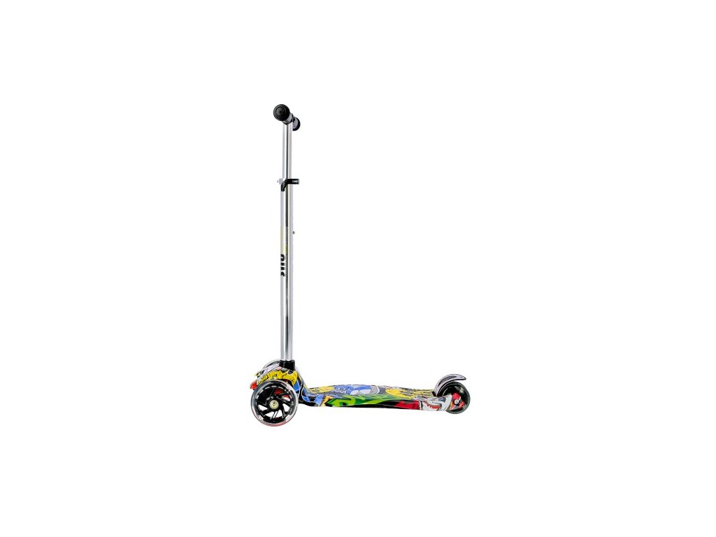 NILS EXTREME HLB06P je tříkolová koloběžka pro nejmenší. Tři kolečka jsou garancí vysoké stability. Díky řízení pomocí naklápění je koloběžka maximálně bezpečná a nehrozí její převrhnutí. Teleskopická řídítka slouží primárně pro udržení rovnováhy. Zadní zdvojené kolečko je opatřeno širokou brzdou a navíc je uloženo v silentbloku pro tlumení drobných nerovností. Svítící kolečka jsou osazeny ložisky ABEC7. Moderní design upoutá pozornost každého vrstevníka. Koloběžku nejlépe využijete během jízdy po rovném, zpevněném povrchu.