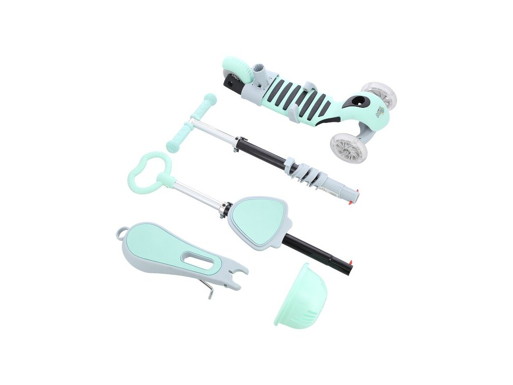 Koloběžku získáme po následné demontáži sedátka. Deck je opatřen proužky z tvrdé gumy, které zabraňují zklouznutí nohy ze stupačky. Tři kolečka jsou garancí vysoké stability. Díky řízení pomocí naklápění je koloběžka maximálně bezpečná a nehrozí její převrhnutí. Teleskopická řídítka slouží primárně pro udržení rovnováhy a jsou opatřeny gripy z termoplastické gumy pro jistý úchop. Svítící kolečka jsou osazeny ložisky ABEC5. Zadní kolečko je opatřeno nášlapnou brzdou Flex Fender pro rychlé a bezpečné zastavení. Nosnost koloběžky je 75 kilogramů.