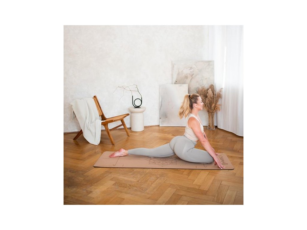 Podložka YM11, dostupná v klasickém přírodním odstínu korku, přitahuje pozornost svou jednoduchostí a funkčností. Vzor na podložce jí dodává nejen jedinečný vzhled, ale slouží i jako pomůcka při polohování při cvičení.