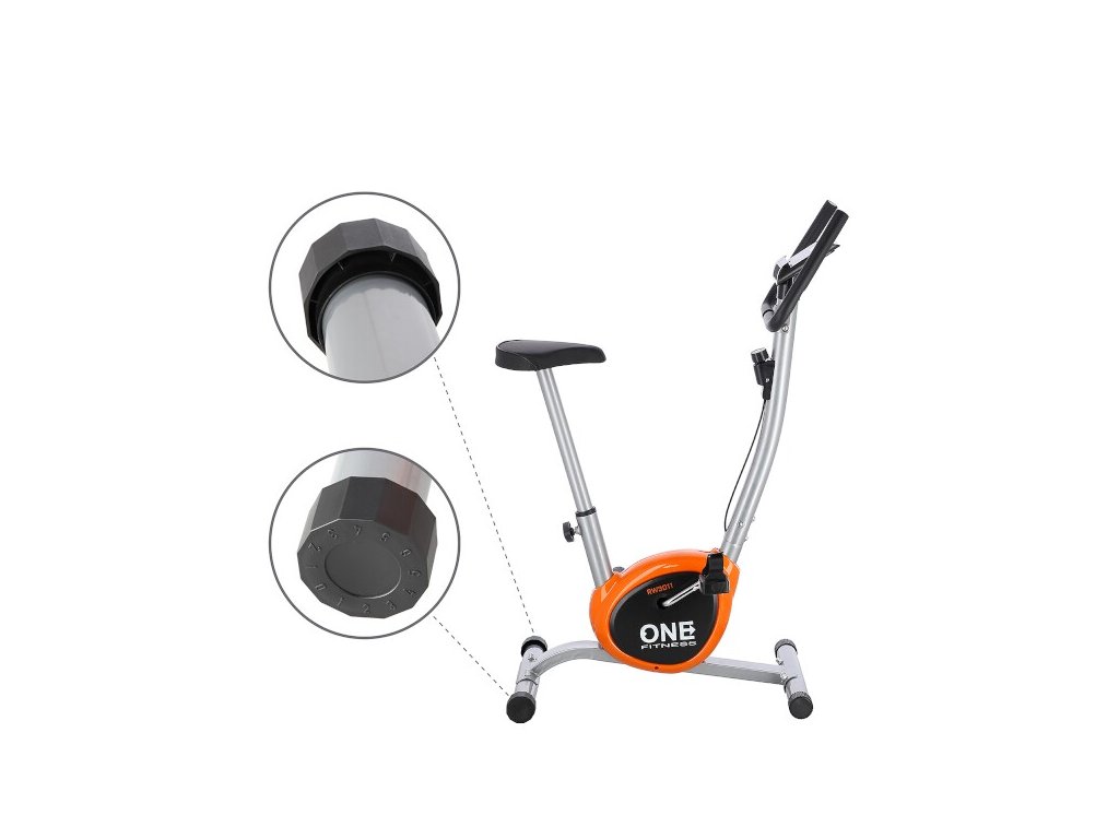 Mechanický volič umožňuje plynulé nastavení zátěže, pohodlné sedlo je výškově nastavitelné do 6-ti poloh, pedály jsou opatřeny řemínky a jejich délku lze nastavit pomocí suchého zipu. Tyto prvky jsou zárukou komfortního tréninku. Díky absenci zátěžového kola je rotoped lehký, má pouze 9,4 kilogramu, a lze ho snadno přenášet. Výškově nastavitelné koncovky na zadním stabilizátoru umožňují vyrovnání trenažéru do roviny. Vzhledem ke konstrukci je mechanický rotoped ONE Fitness RW3011 vhodný pro doplňkový trénink, nebo jako vedlejší pohybová aktivita, nosnost je 100 kg.