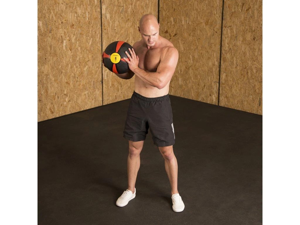 Medicinbal HMS NK04 je vyroben z hrubé a pevné gumy, díky které je velice odolný vůči poškození. Vroubkovaný povrch míče garantuje pevný úchop.