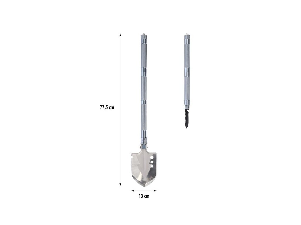 Multifunkční skládací lopata NILS Camp NC1701 XL je kombinací síly a přesnosti, která je nezbytná pro ty, kteří oceňují vysokou kvalitu a funkčnost. Vyrobeno z nerezové oceli a hliníku, je nejen odolná, ale taky lehká. Díky své působivé velikosti v rozloženém stavu zaručuje spolehlivost a efektivitu potřebnou pro jakýkoli úkol v terénu. Po složení se promění v kompaktní doplněk, který se snadno vejde do každého batohu.