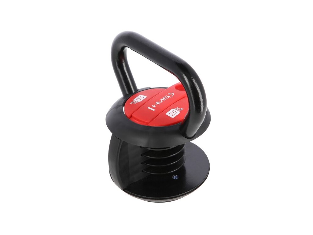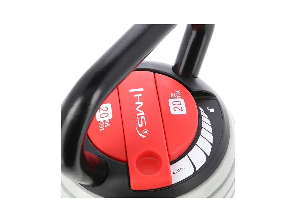 HMS KR20 je ideálním nástrojem pro domácí trénink. KR20 disponuje systémem regulace hmotnosti, kdy po zvednutí a přesunutí páky, můžeme upravit celkovou hmotnost vyjmutím, nebo vložením jednotlivých talířů. Každý ze šesti talířů má hmotnost 2,5 libry a KR20 tak je možno nastavit na hodnotu z rozsahu 2,16 - 3,3 - 4,44 - 5,58 - 6,72 - 7,86 - 9 kilogramů. Talíře jsou vyrobeny o kvalitní, lakované oceli. Nosná část kettlebellu je vyrobena z kombinace oceli a plastu. Průměr madla je 25 milimetrů.