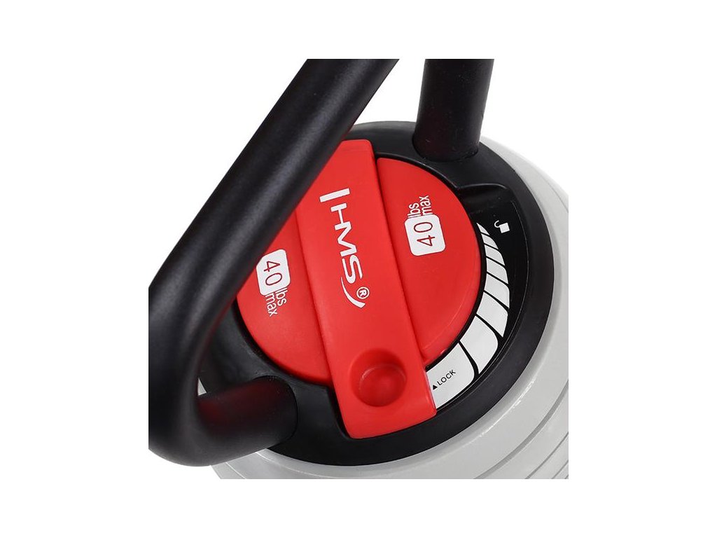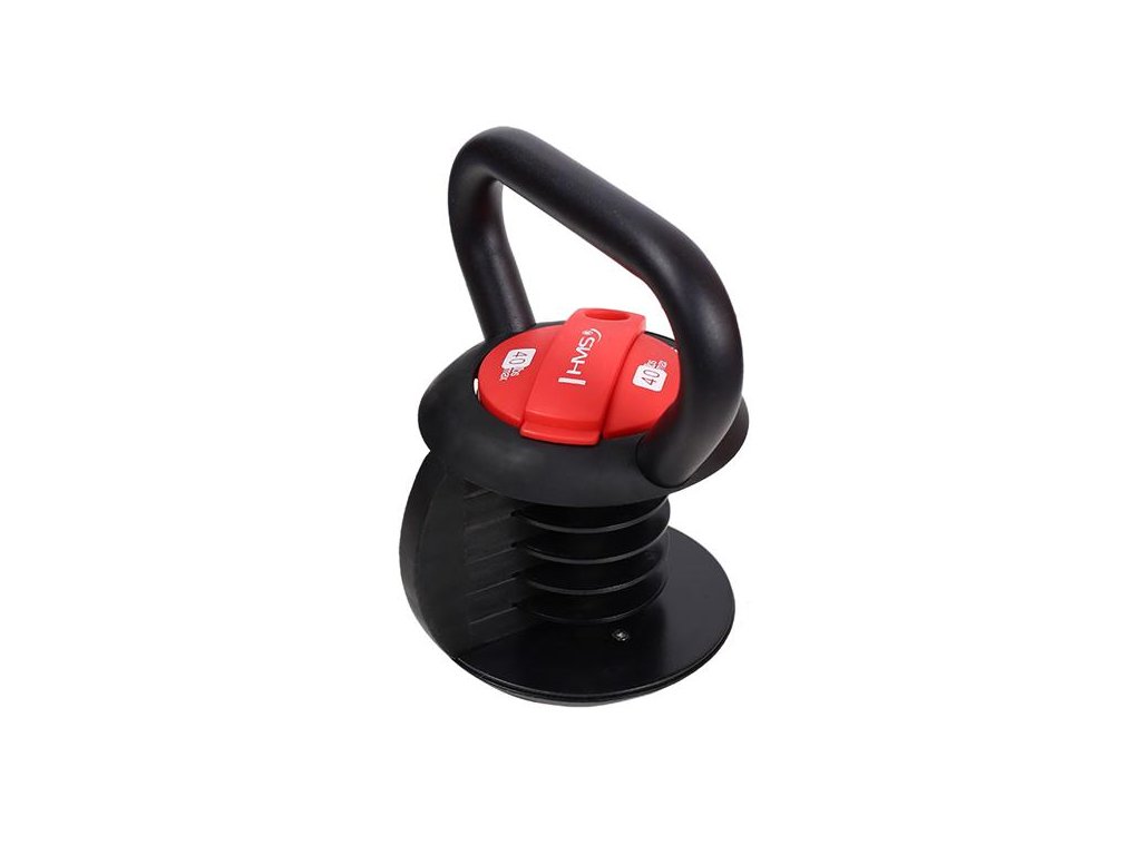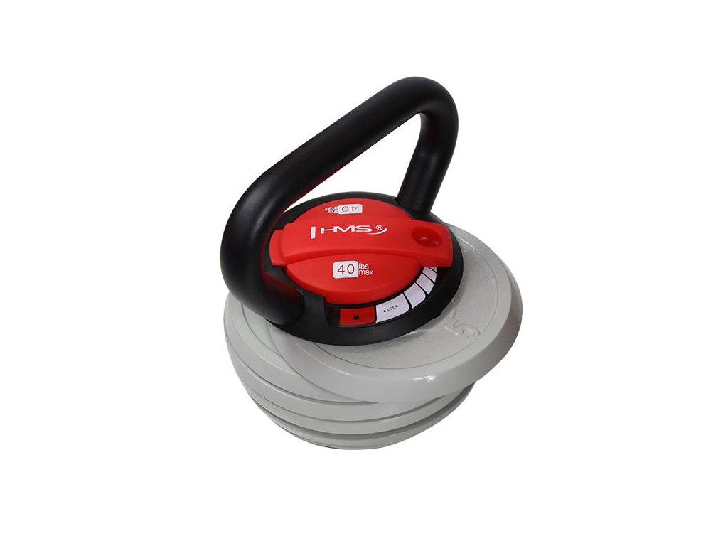 HMS KR40 je nastavitelný kettlebell. Snadné a jednoduché nastavení zátěže je hlavní výhodou tohoto kettlebellu. U činky tak lze díky regulaci na vrchni straně jednoduše nastavit hodnotu pro cvičení. Rozmezí od 3 do 17 kg plně vystačí k domácímu cvičení. Velkým kladem je taky široká protiskluzová rukojeť s průměrem 3 cm. Upozornění: veškerá váha závaží je uváděna v librách (lbs). 1 libra = 0,45 kg