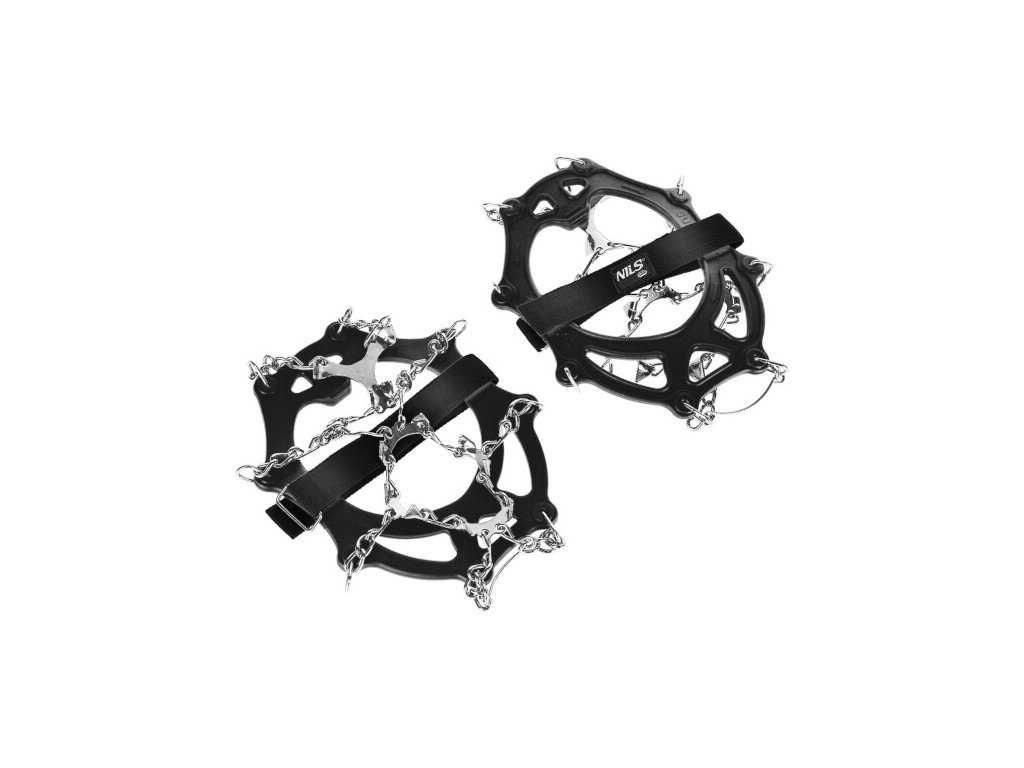 NILS Camp NC1717 jsou řetězové nesmeky - protiskluzové návleky na boty, které poskytují skvělou přilnavost na kluzkém povrchu pokrytém ledem nebo blátem. Jsou také ideální na náročnou, horskou turistiku a nebo na zledovatělné chodníky v městě. NC1717 se velmi snadno nasazují, takže výrobek je určen všem bez rozdílu věku.