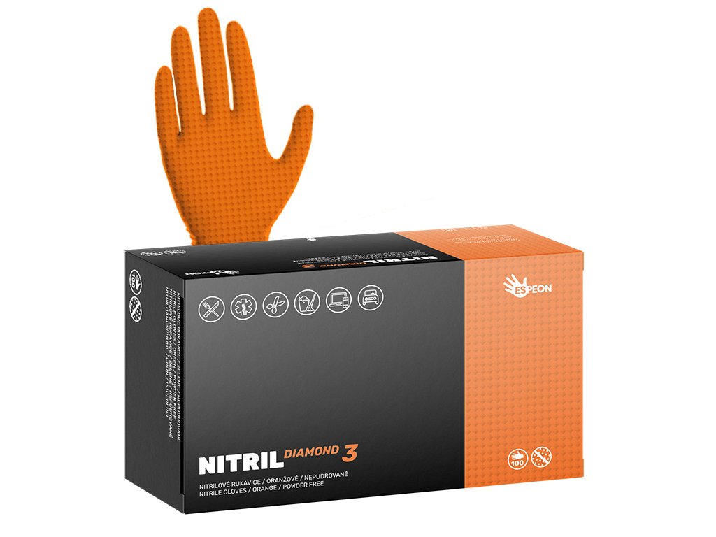 Nitrilové rukavice Espeon NITRIL DIAMOND3 100 ks, nepudrované, oranžové, 8.0 g