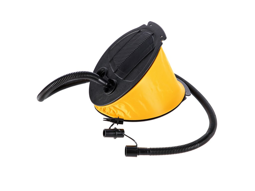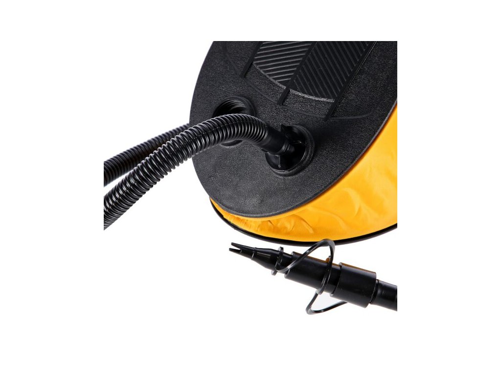 Díky kompaktním rozměrům a 105 cm dlouhé hadici umožňuje pohodlné a efektivní pumpování, aniž byste se museli ohýbat nebo vynakládat velké úsilí. Pumpa je lehká a lze ji zajistit v ploché poloze, což výrazně usnadňuje její přepravu a skladování. Na horní straně naleznete 2 výstupy - jeden pro nafukování a druhý pro vyfukování.