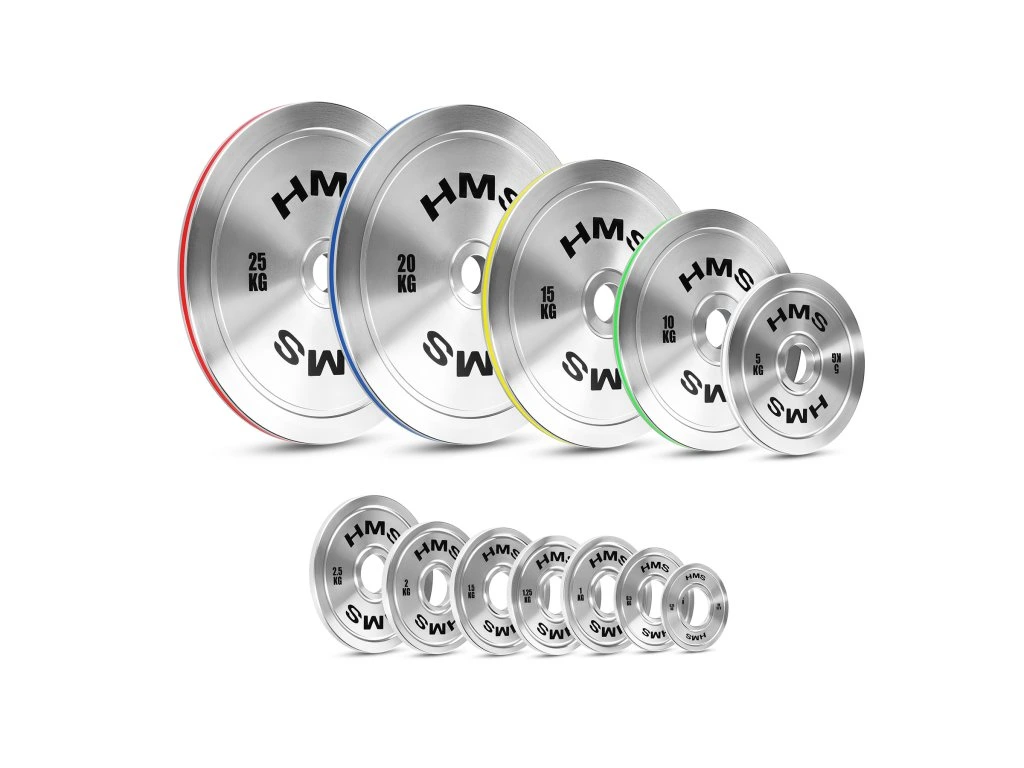 Kotouče ve variantách 5; 10; 15; 20 a 25 kilogramů mají na hraně barevný pruh odpovídající mezinárodním olympijským normám. Díky tomu lze rychle rozpoznat hmotnost závaží, což usnadňuje organizaci tréninku a dynamické změny váhy během série cviků.
