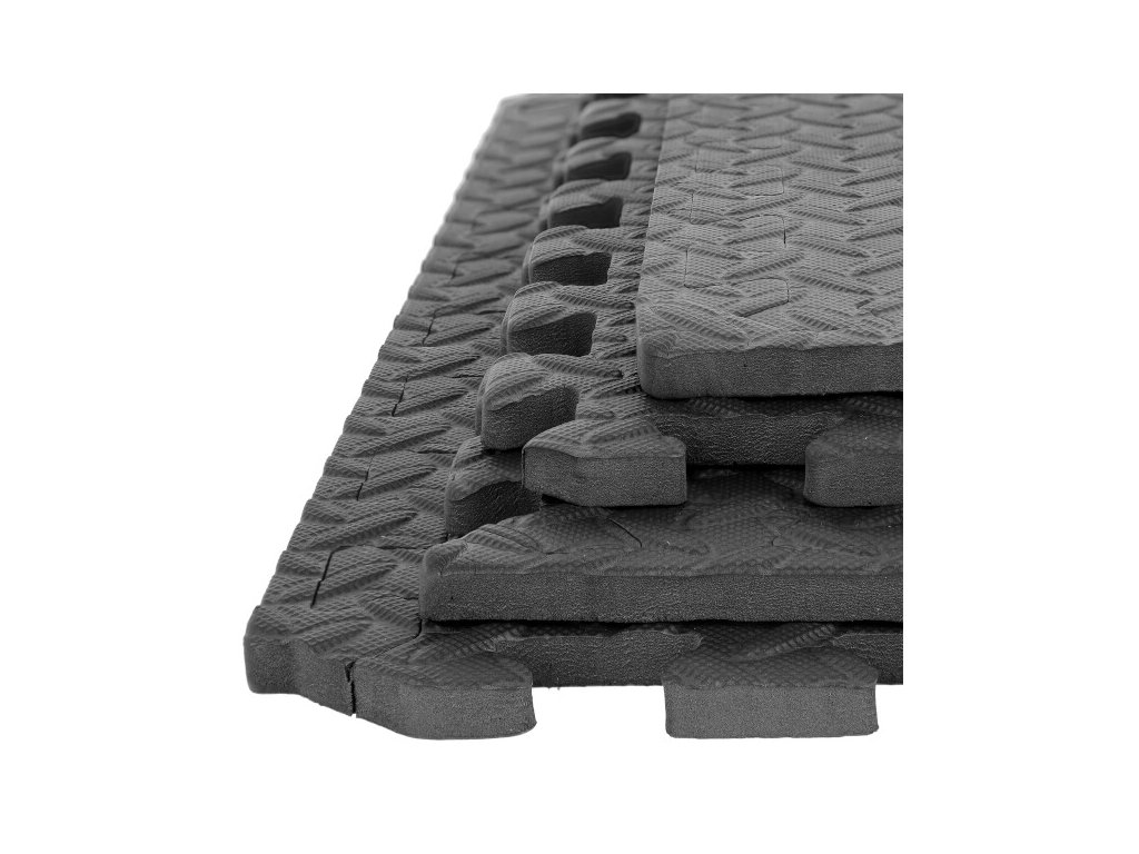 Modulární, ochranná podložka HMS MP12 chrání podlahu před poškozením a také tlumí zvuky a vibrace, které vznikají například během odhozů činek a pokládání nářadí. Výchozí balení je určeno pod jeden stroj, nebo lavičku. Díky "puzzle" zámkům po obvodu každého dílu Vám nic nebrání ve vyskládání například celé podlahy. Balení obsahuje 4 čtvercové a 8 zakončovacích dílů pro hladký obvod.