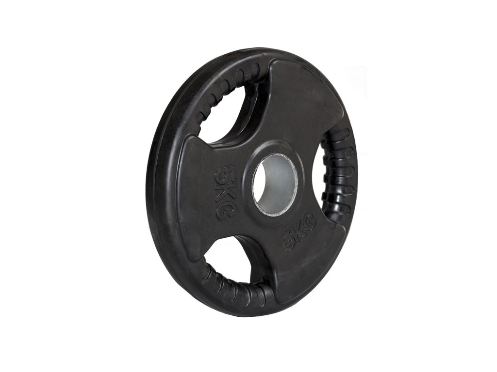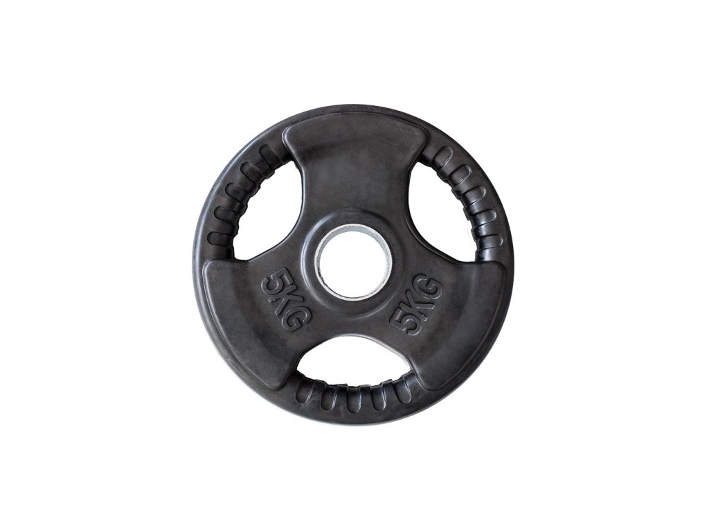 Olympijský, pogumovaný kotouč HMS Tri-grip je známkou kvality a precizního provedení. Tento talíř má otvor o průměru 50 mm, je tedy vhodný pro všechny typy olympijských os. Závaží disponuje třemi držadly pro snadnou manipulaci a pogumovaný povrch prodlužuje jeho životnost.