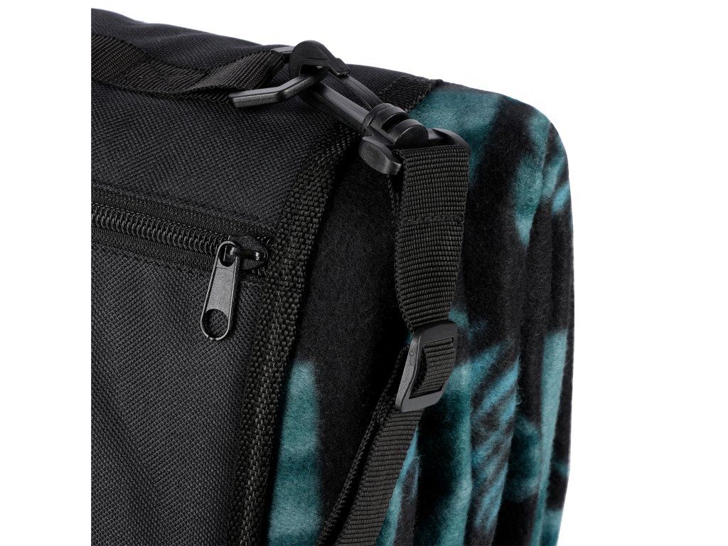 Deku lze snadno složit do praktické "tašky". Klopa se suchým zipem zabraňuje jejímu náhodnému rozbalení a nastavitelný popruh přes rameno a madlo umožňují deku pohodlně přenášet.