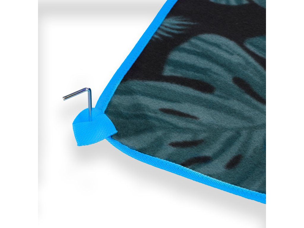 V každém rohu deky se nachází praktické očko pro připevnění deky k podkladku pomocí stanových kolíků, které jsou součástí balení, deka se pak neshrnuje a i ve větru leží na svém místě.