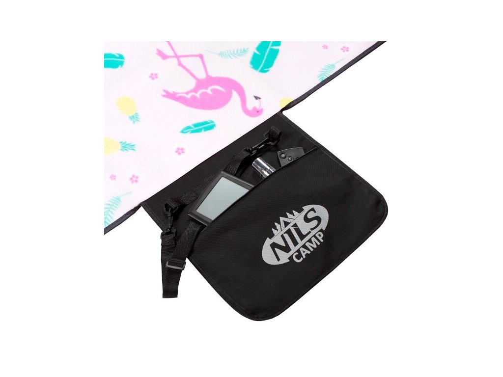 Piknikovou deku NILS Camp NC8009 využijete nejen během rodiného oběda v parku, ale také u vody, nebo například jako podlahu ve stanu. Materiál vrchní strany je na dotek příjemný fleece. Spodní vrstva je vyrobena z hliníkové fólie opatřené voděodolnou úpravou, která tak chrání před vlhkem a chladem například od mokré trávy. Pro snadné přenášení lze deku složit do malé "tašky" vybavené uchem a popruhem přes rameno. V klopě se nachází kapsa na zip, do které se vejdou například klíče, telefon nebo peněženka.