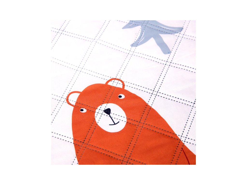 NC8028 je vyrobena ze 2 vrstev polyesteru. Horní strana je běžně tkaná, vyvedena hravém designu. Spodní vrstva je vyrobena z polyesteru v úpravě Oxford - je speciálně tkaný a opatřen PVC zátěrem. Oxford je voděodolný a spodní strana tak chrání před vlhkem a chladem například od mokré trávy.