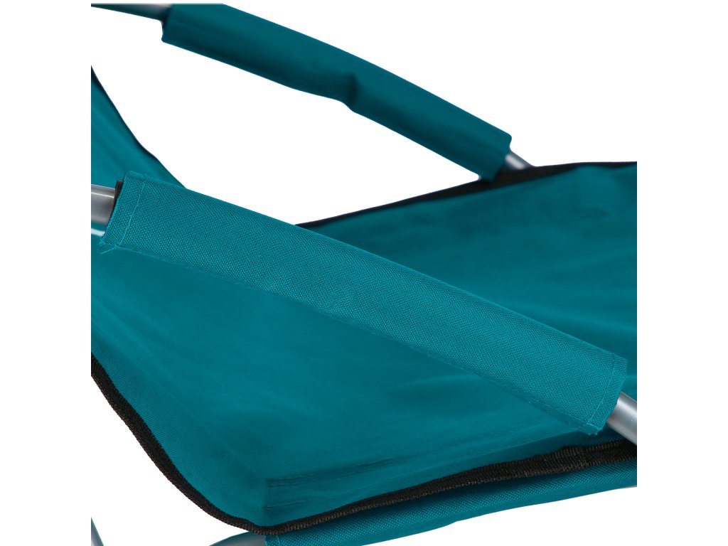 Loketní opěrky jsou opatřeny pěnovým návlekem pro maximální komfort během lenošení. Pro snadné přenášení lze křeslo složit a zabalit do dodávaného vaku.