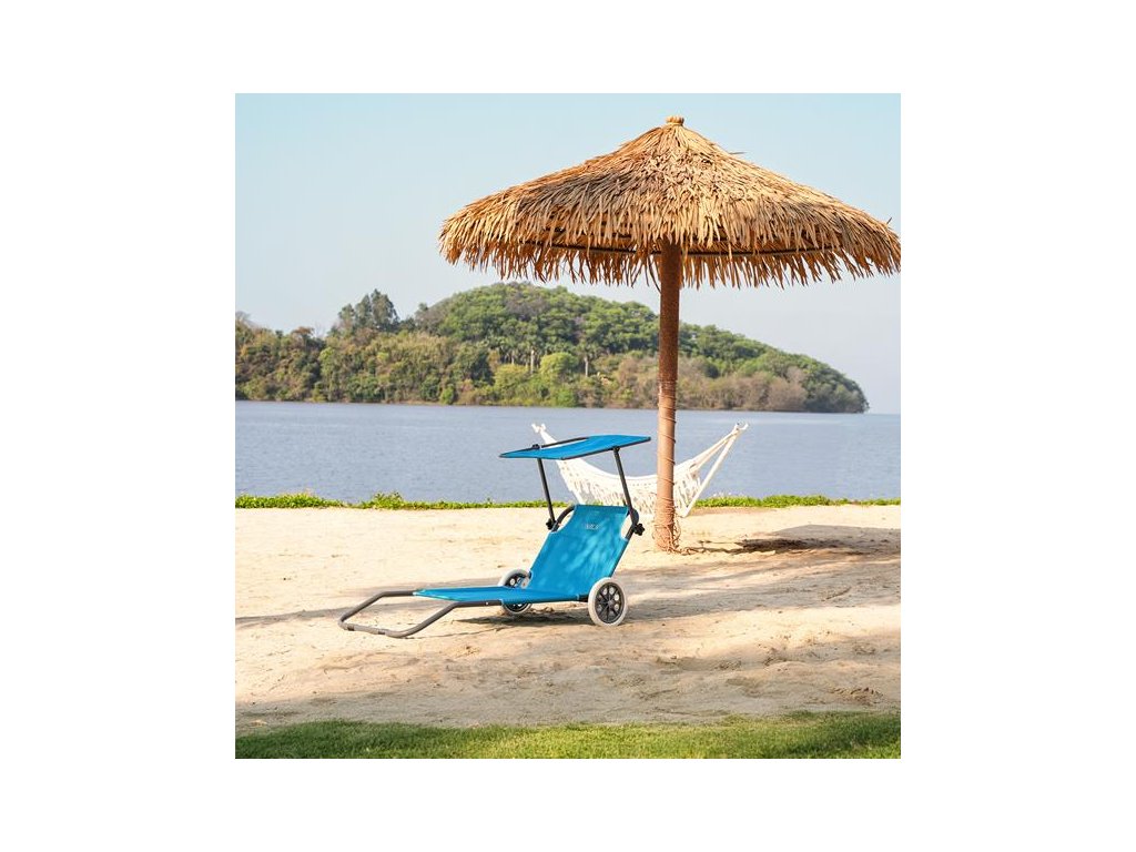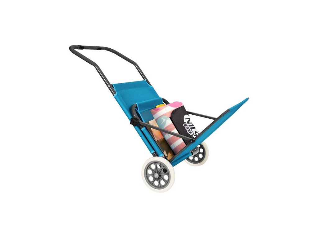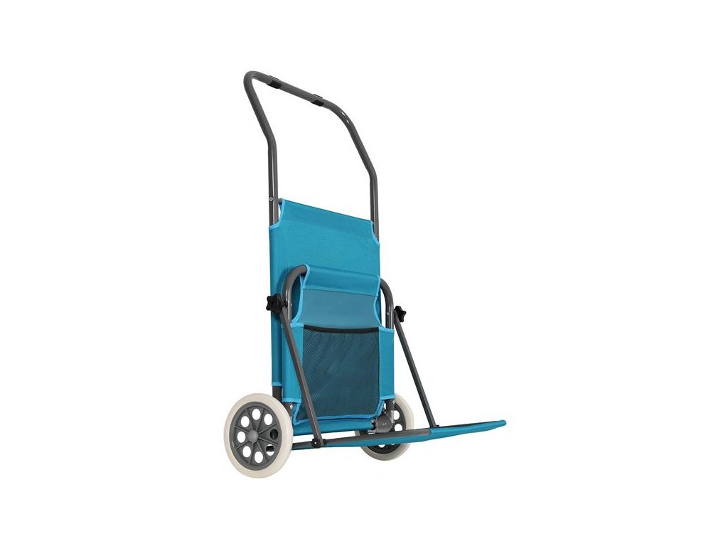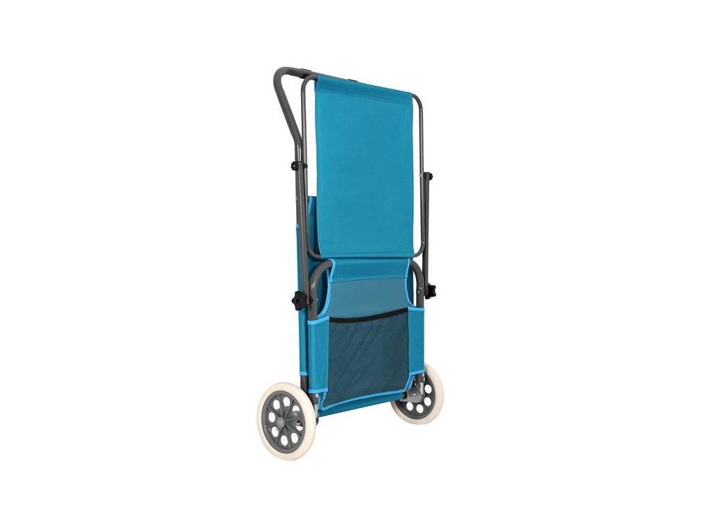 Na zadní části konstrukce jsou umístěna dvě transportní kolečka, která výrazně usnadňují přesun lehátka. Stačí lehce zvednout přední část a vést ho jako kufr – bez nutnosti zvedání nebo demontáže. To je obzvlášť užitečné na pláži, v kempu nebo když je třeba rychle přesunout lehátko na slunnější či zastíněné místo.