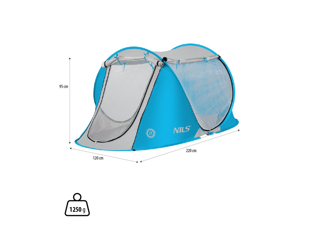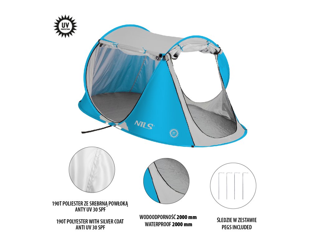 Samorozkládací plážový stan NILS Camp NC3043 od společnosti je ideálním řešením pro každého milovníka pobytů u vody. Stan NC3043 se sám rozloží, je odolný a funkční, ale hlavně vás ochrání před slunečními paprsky, poskytne stín a zároveň vás ochrání před větrem.