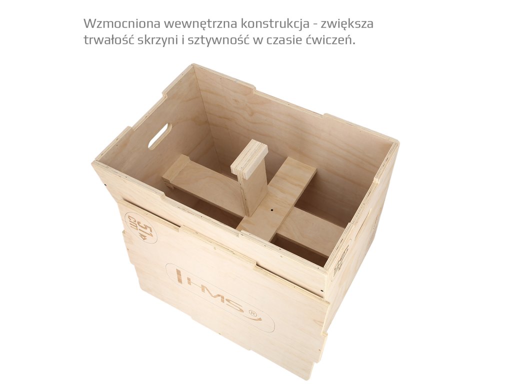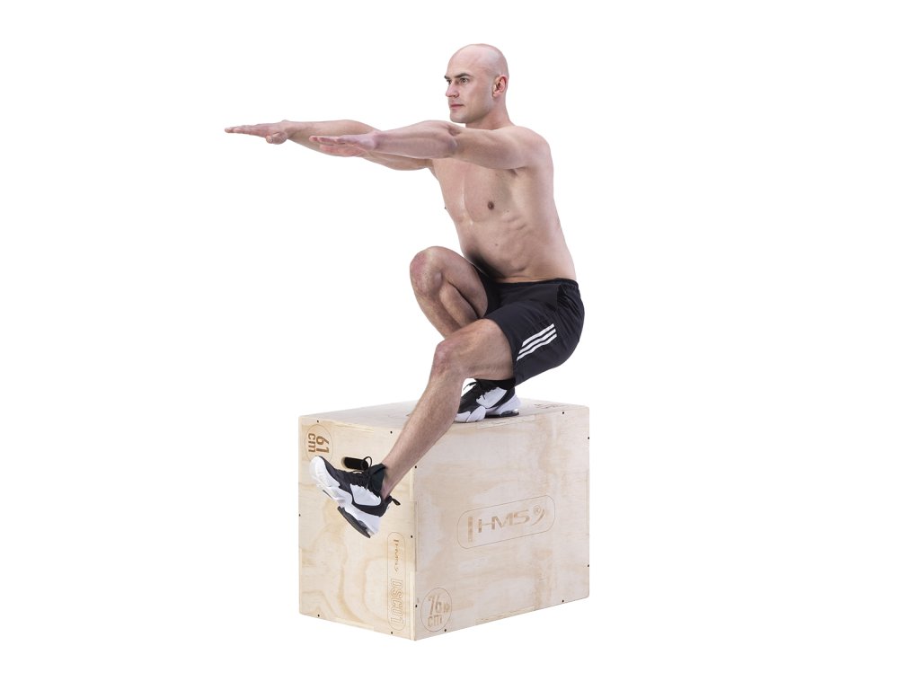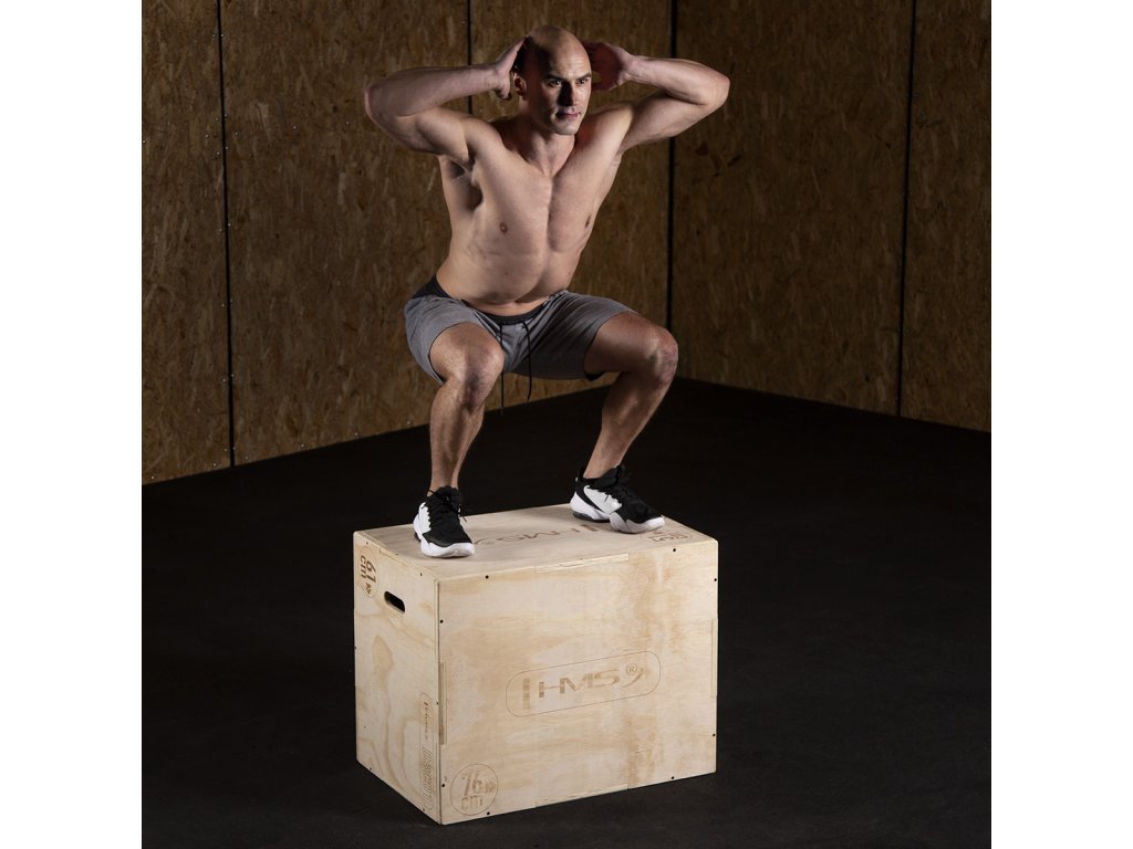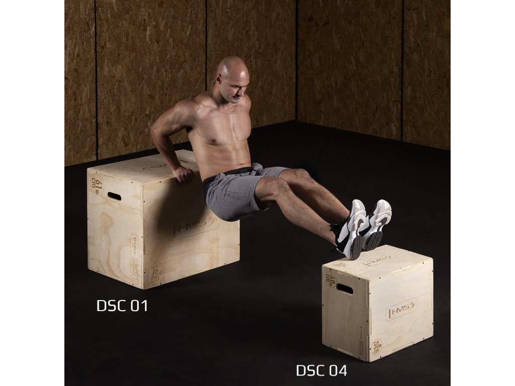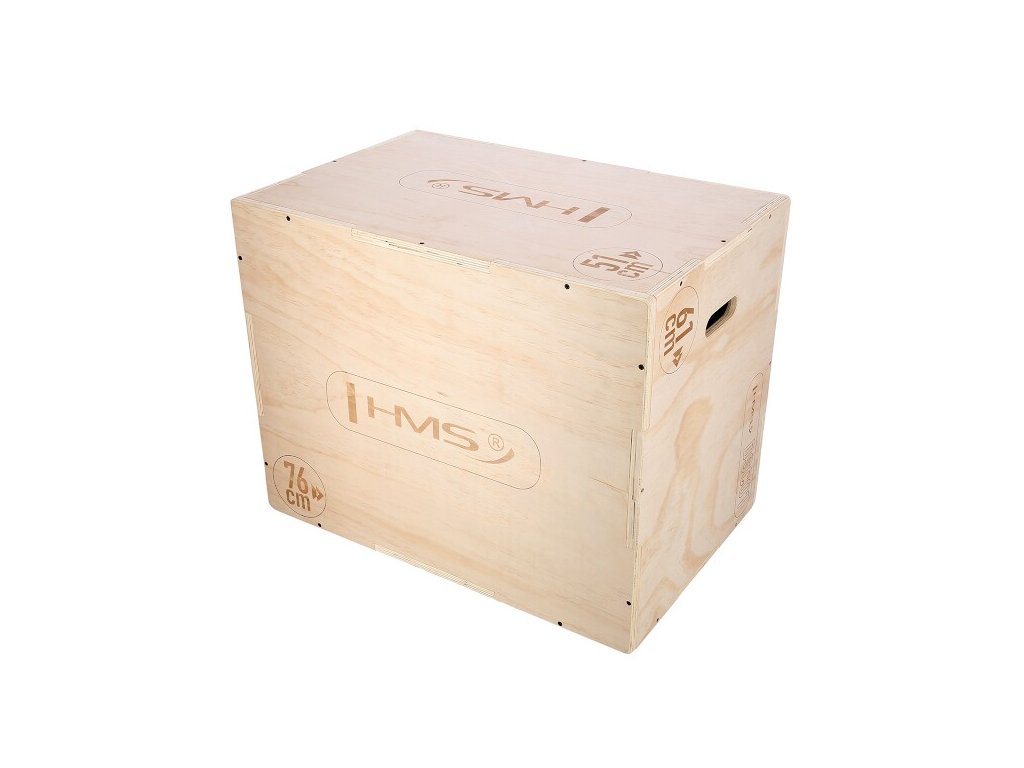 Plyometrický box HMS DSC01 je bedna určena pro kondiční trénink. Box je nedílnou součástí každého fitness centra, pomůckou profesionálních sportovců nebo i atletů. Vyroben je z 18 mm překližky a má klasické rozměry 76,2 x 60,96 x 50,8 cm (30 x 24 x 20 palců).