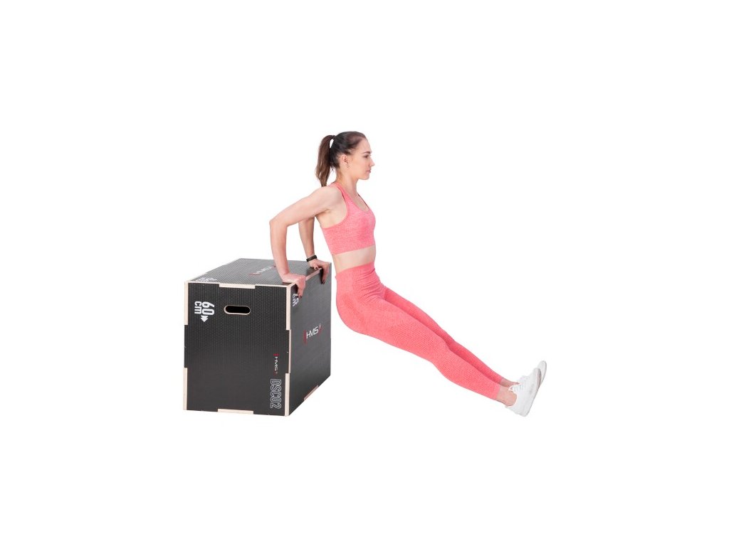 Plyometrický box HMS DSC02 je bedna určena pro kondiční trénink. Box je nedílnou součástí každého fitnesscentra, pomůckou profesionálních sportovců nebo i atletů. Vyroben je z 18 mm překližky a má klasické rozměry 75 x 60 x 50 cm (30 x 24 x 20 palců)..