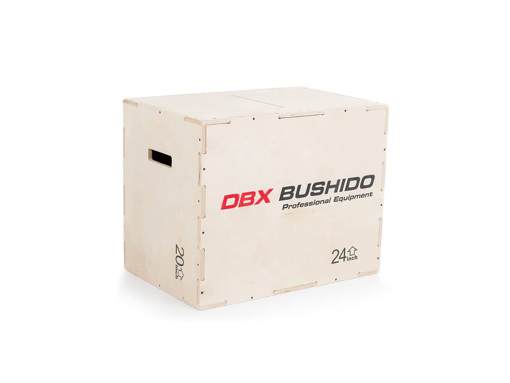 Plyometrický box DBX BUSHIDO Premium je bedna určena pro kondiční trénink. Box je nedílnou součástí každého fitnesscentra, pomůckou profesionálních sportovců nebo i atletů. Vyroben je z 15 mm překližky a má klasické rozměry 76,2 x 60,96 x 50,8 cm (30 x 24 x 20 palců). Varianta "Premium" má jednotlivé desky opatřené zámky, které do sebe během montáže přesně zapadnou a zvyšuje se tak celková stabilita a odolnost bedny.