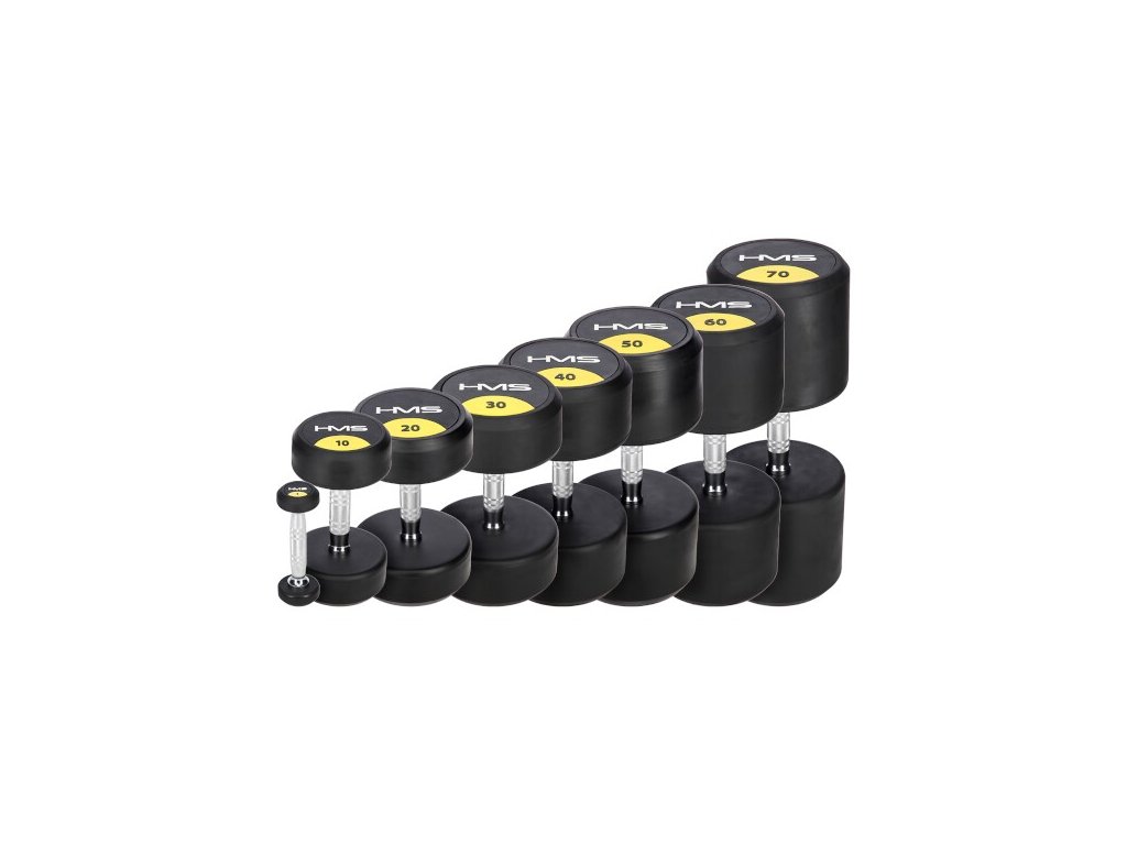 12-ti kilogramová jednoruční činka HMS HG Pro je určená pro profesionální použití jak doma tak v posilovně. Závaží tvoří litinový odlitek pokrytý silnou vrstvou gumy, která ochrání jak činku, tak podklad před poškozením. Na čelní straně je značka HMS a údaj o hmotnosti v kilogramech. Rukojeť je vyrobena z chromované oceli, pro pohodlný úchop má soudkovitý tvar s vroubkovaným povrchem.