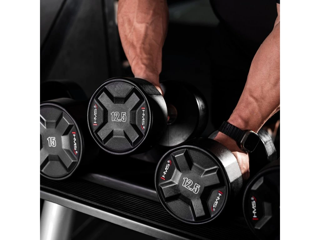 Jednoruční činky HMS HPC jsou vyrobeny z ocelového jádra potaženého litým polyuretanem (CPU). HPC jsou vybavením vytvořeným s ohledem na nejnáročnější uživatele. Výjimečná odolnost, estetické provedení a pokročilé vlastnosti z nich činí ideální volbu pro ty, kteří očekávají spolehlivost během intenzivních tréninků.