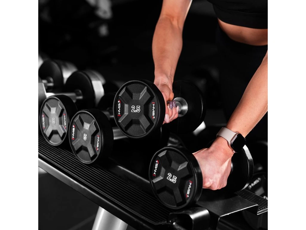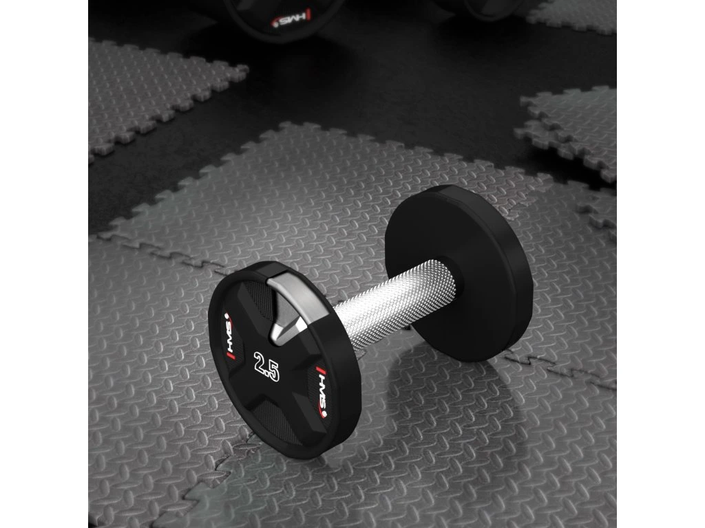 Jednoruční činky HMS HPC jsou vyrobeny z ocelového jádra potaženého litým polyuretanem (CPU). HPC jsou vybavením vytvořeným s ohledem na nejnáročnější uživatele. Výjimečná odolnost, estetické provedení a pokročilé vlastnosti z nich činí ideální volbu pro ty, kteří očekávají spolehlivost během intenzivních tréninků.