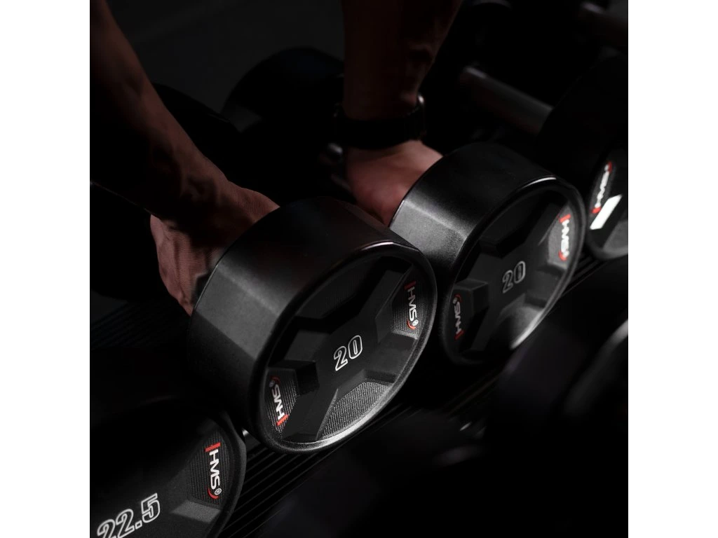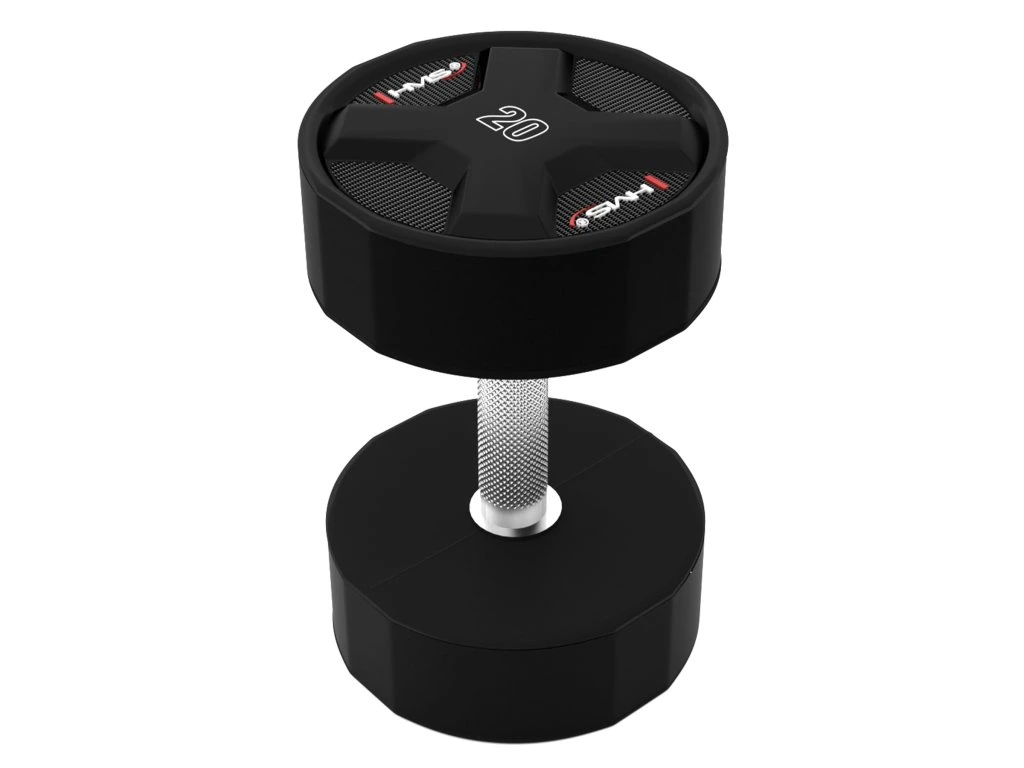 Jednoruční činky HMS HPC jsou vyrobeny z ocelového jádra potaženého litým polyuretanem (CPU). HPC jsou vybavením vytvořeným s ohledem na nejnáročnější uživatele. Výjimečná odolnost, estetické provedení a pokročilé vlastnosti z nich činí ideální volbu pro ty, kteří očekávají spolehlivost během intenzivních tréninků.