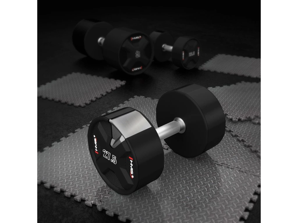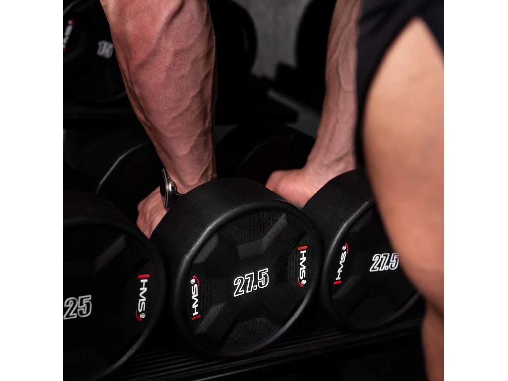 Jednoruční činky HMS HPC jsou vyrobeny z ocelového jádra potaženého litým polyuretanem (CPU). HPC jsou vybavením vytvořeným s ohledem na nejnáročnější uživatele. Výjimečná odolnost, estetické provedení a pokročilé vlastnosti z nich činí ideální volbu pro ty, kteří očekávají spolehlivost během intenzivních tréninků.