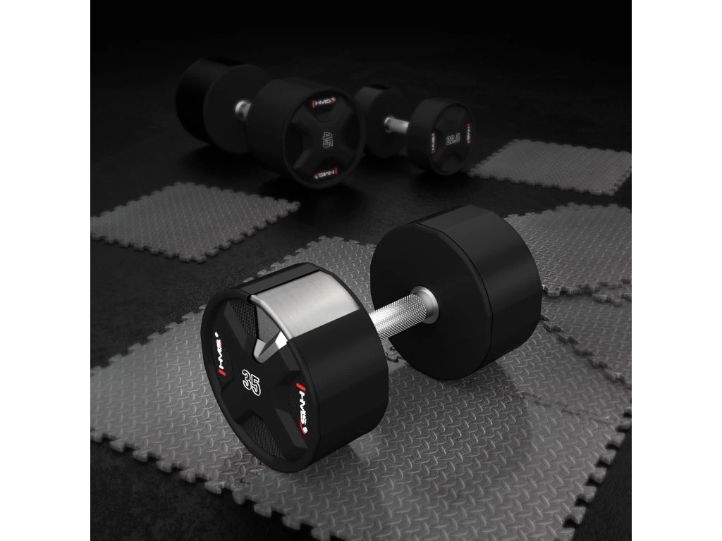 Jednoruční činky HMS HPC jsou vyrobeny z ocelového jádra potaženého litým polyuretanem (CPU). HPC jsou vybavením vytvořeným s ohledem na nejnáročnější uživatele. Výjimečná odolnost, estetické provedení a pokročilé vlastnosti z nich činí ideální volbu pro ty, kteří očekávají spolehlivost během intenzivních tréninků.