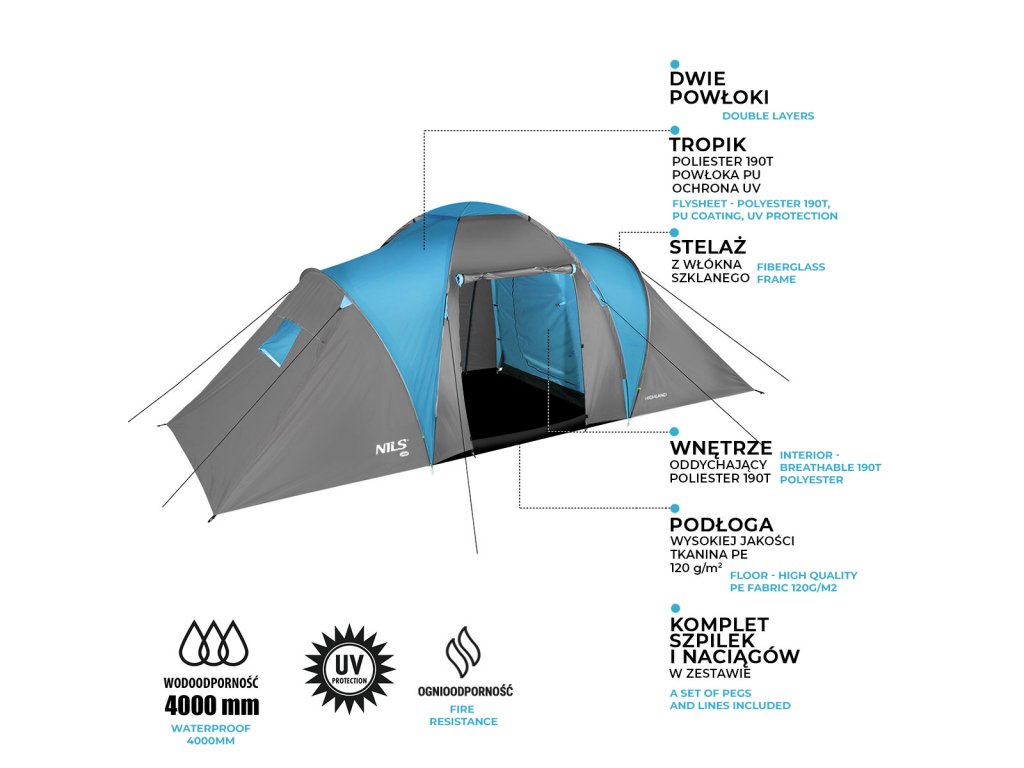 Rodinný stan NILS Camp NC6031 Highland modro-šedý