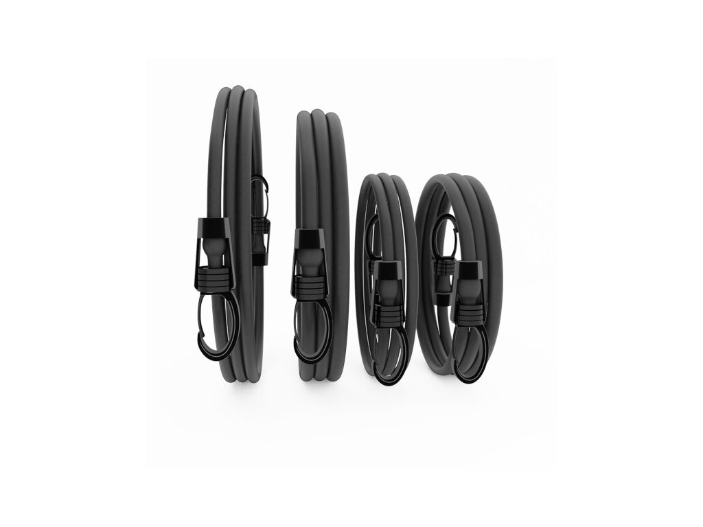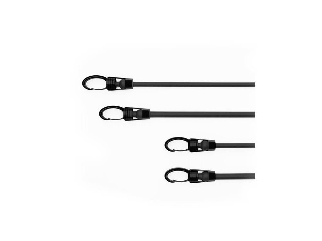 - Univerzálnost – přidávejte další gumy pro zvýšení odporu pomocí funkčních karabin, měňte úhel tréninku přesunutím úchytu úchytu za dveře a střídejte cvičené končetiny výměnou rukojetí.