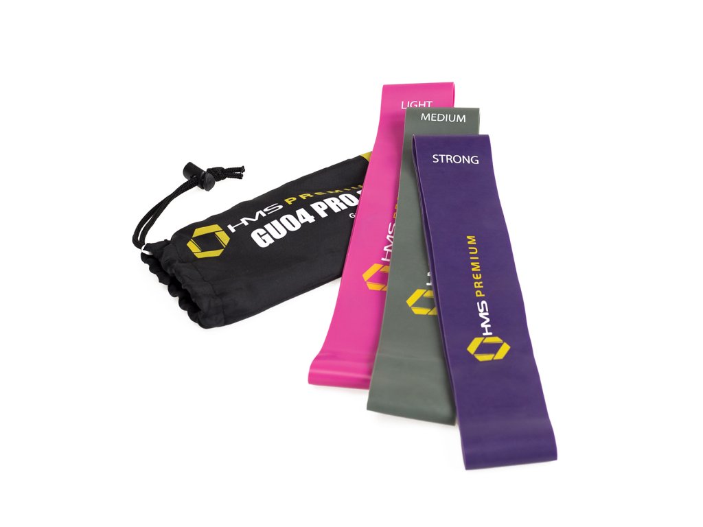Set 3 krátkých posilovacích gum HMS jež jsou využívany v silovém tréninku, kondičním tréninku, ale i v rehabilitačním cvičení. V silovém tréninku slouží jako dopomoc nebo jako dynamická zátěž. Při rehabilitaci jsou využité protože se nejedná o přímou zátěž, ale guma postupným tahem vytváří odpor a to především při úrazech svalů, šlach a kloubů.