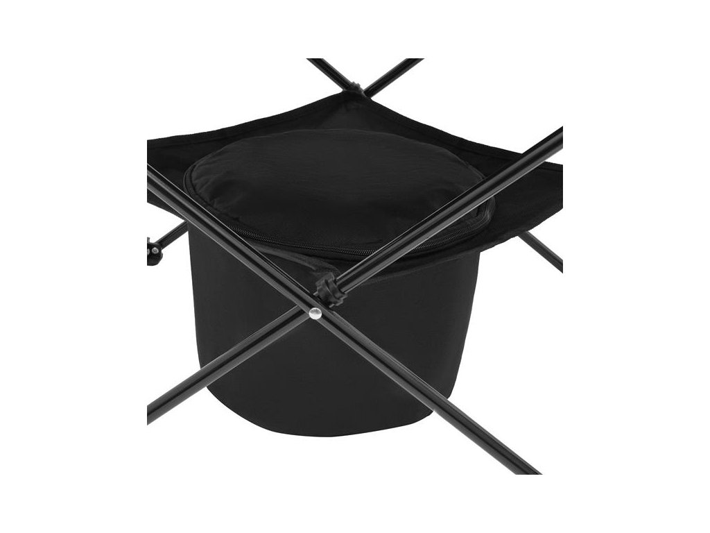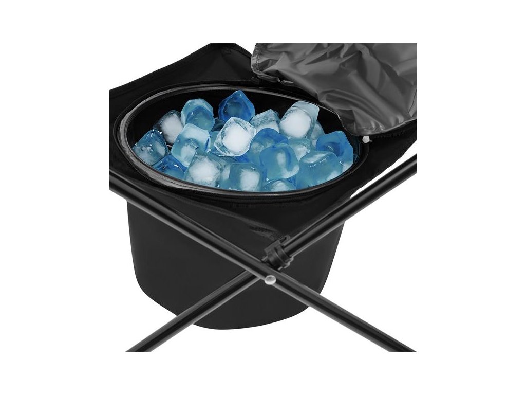 Pod odkládací plochou stolku se nachází uzavíratelný prostor s funkcí chladicí tašky – ideální pro uchovávání nápojů a občerstvení při správné teplotě i v horkých dnech. To je skvělá pomůcka pro delší pobyt daleko od ledničky. Navíc byla plocha stolku vybavena hned čtyřmi košíky na kelímky nebo lahve, což výrazně zvyšuje pohodlí při jídle a relaxaci.