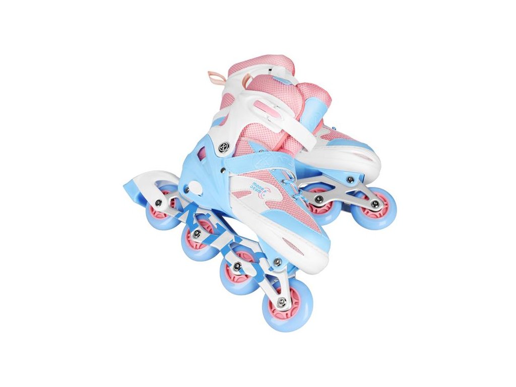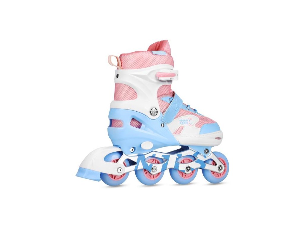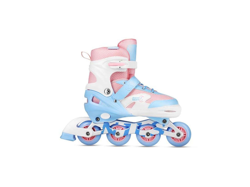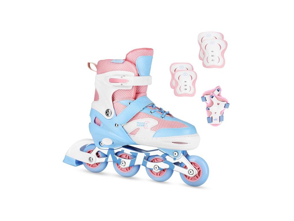 Sada Moonbeam NA0189 je perfektní volbou pro děti a teenagery, kteří s bruslením na kolečkových bruslích teprve začínají. Sada obsahuje kolečkové brusle a sadu chráničů zápěstí, loktů a kolen, díky nimž uživatel získává nejen pohodlí, ale především bezpečnost při učení i každodenním ježdění.