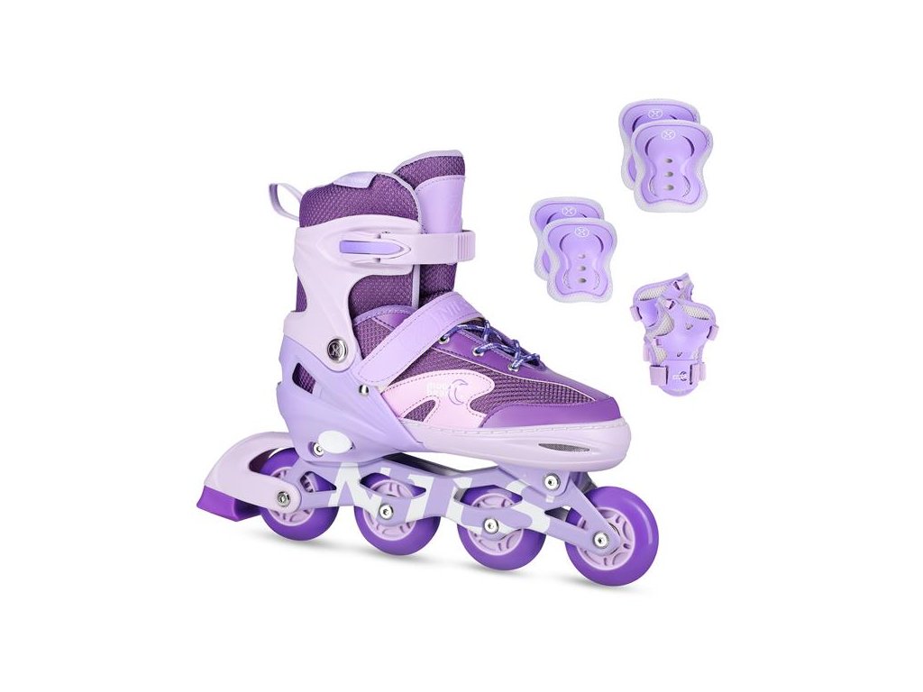Sada Moonbeam NA0189 je perfektní volbou pro děti a teenagery, kteří s bruslením na kolečkových bruslích teprve začínají. Sada obsahuje kolečkové brusle a sadu chráničů zápěstí, loktů a kolen, díky nimž uživatel získává nejen pohodlí, ale především bezpečnost při učení i každodenním ježdění.
